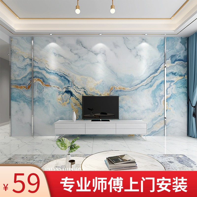 欧式仿大理石电视背景墙壁纸客厅沙发餐厅L影视墙壁布公司前台墙