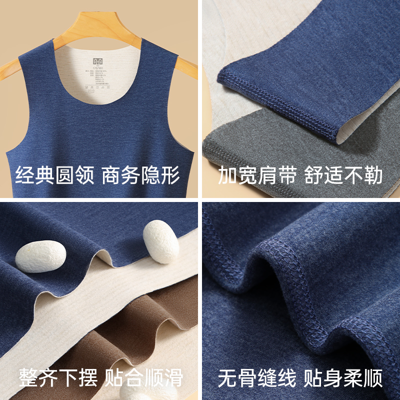 恒源祥保暖内衣加绒德背心男士秋含羊绒桑蚕丝无痕发热不臃肿上衣