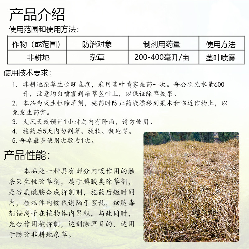 精草铵磷铵盐除草烂根剂非耕地小飞蓬牛筋草克星烂根剂果园除草剂