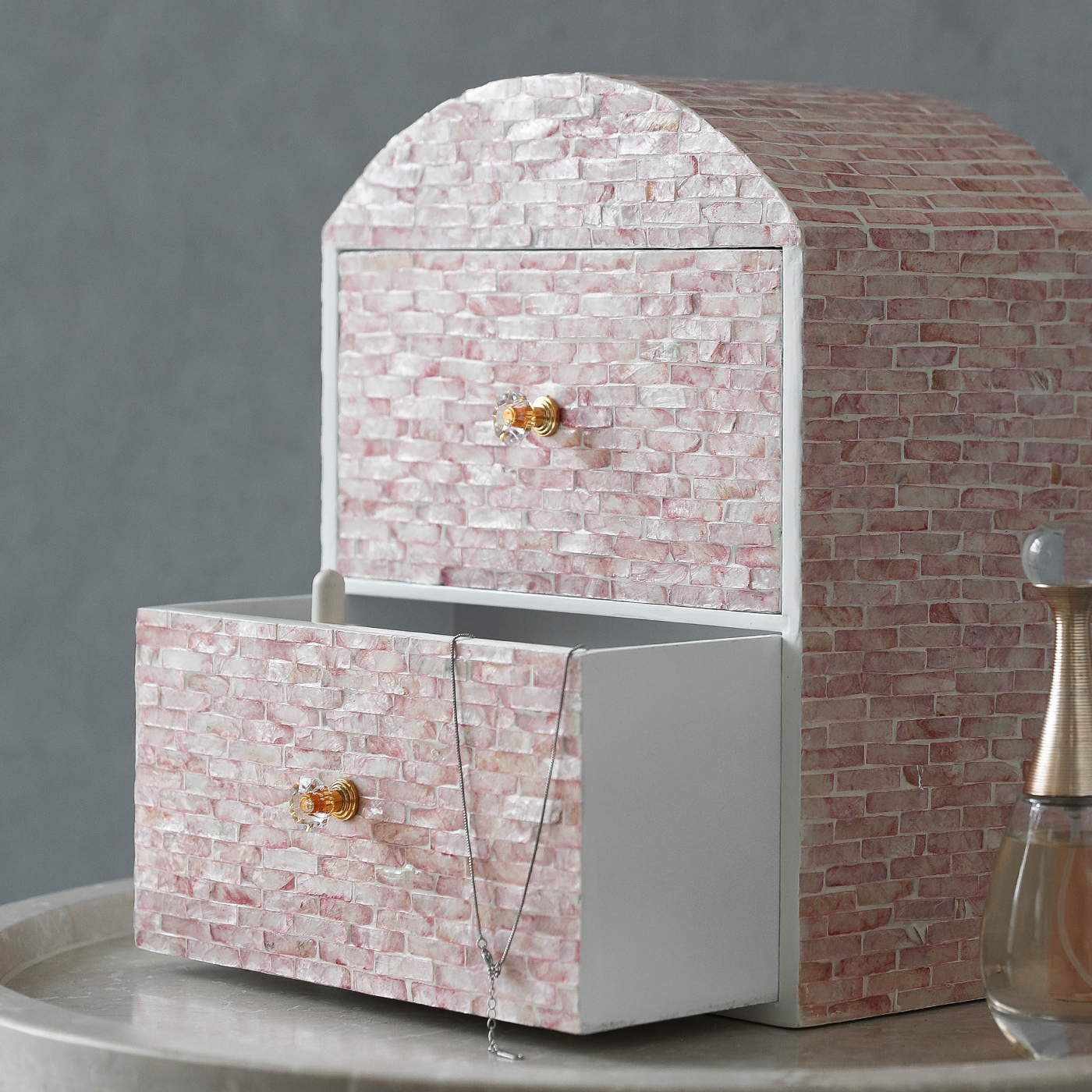 法式粉色贝壳收纳架化妆首饰品储物盒梳妆台桌面抽屉式格子置物架