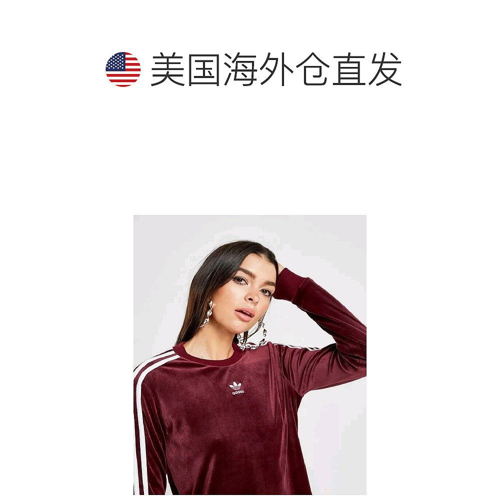 自营|Adidas阿迪达斯春季宽松时尚女士上装褐红色圆领T恤长袖