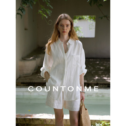COUNTONME 松弛夏日/慵懒随性风全亚麻廓形衬衫/短裤套装