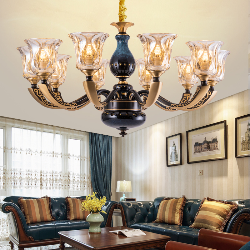 高端美式吊灯全铜客厅吊灯复古陶瓷大厅主灯大气欧式卧室餐厅灯具