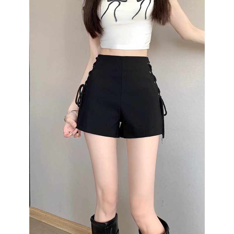 高腰黑色夏季短裤女团2025新款修身打底裤子绑带辣妹外穿西装热裤