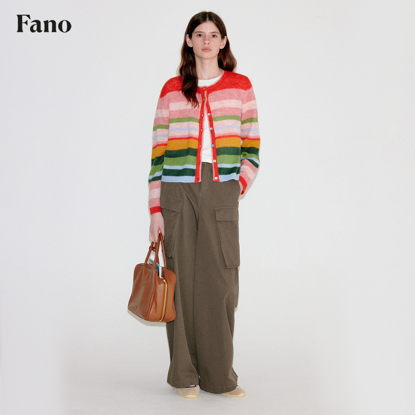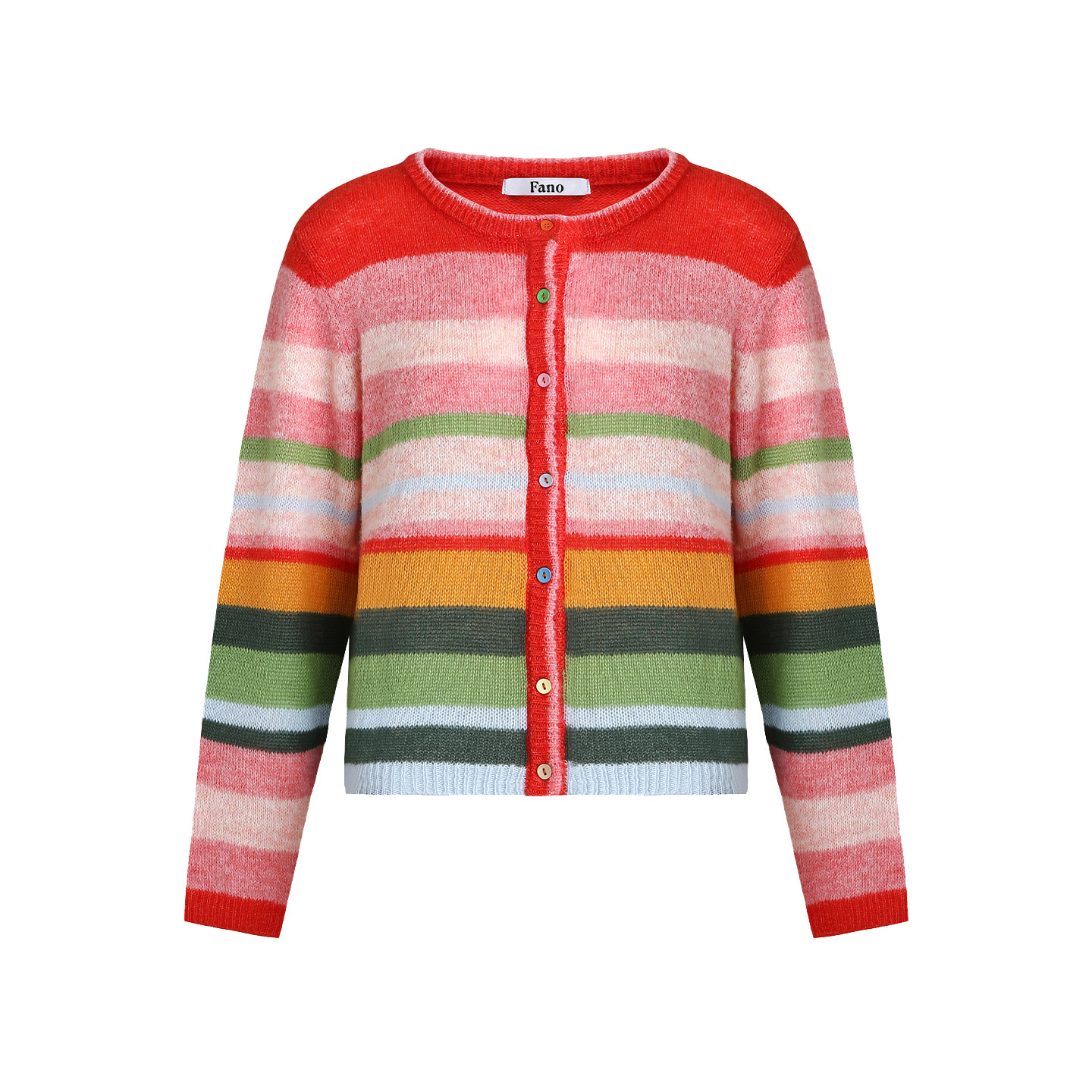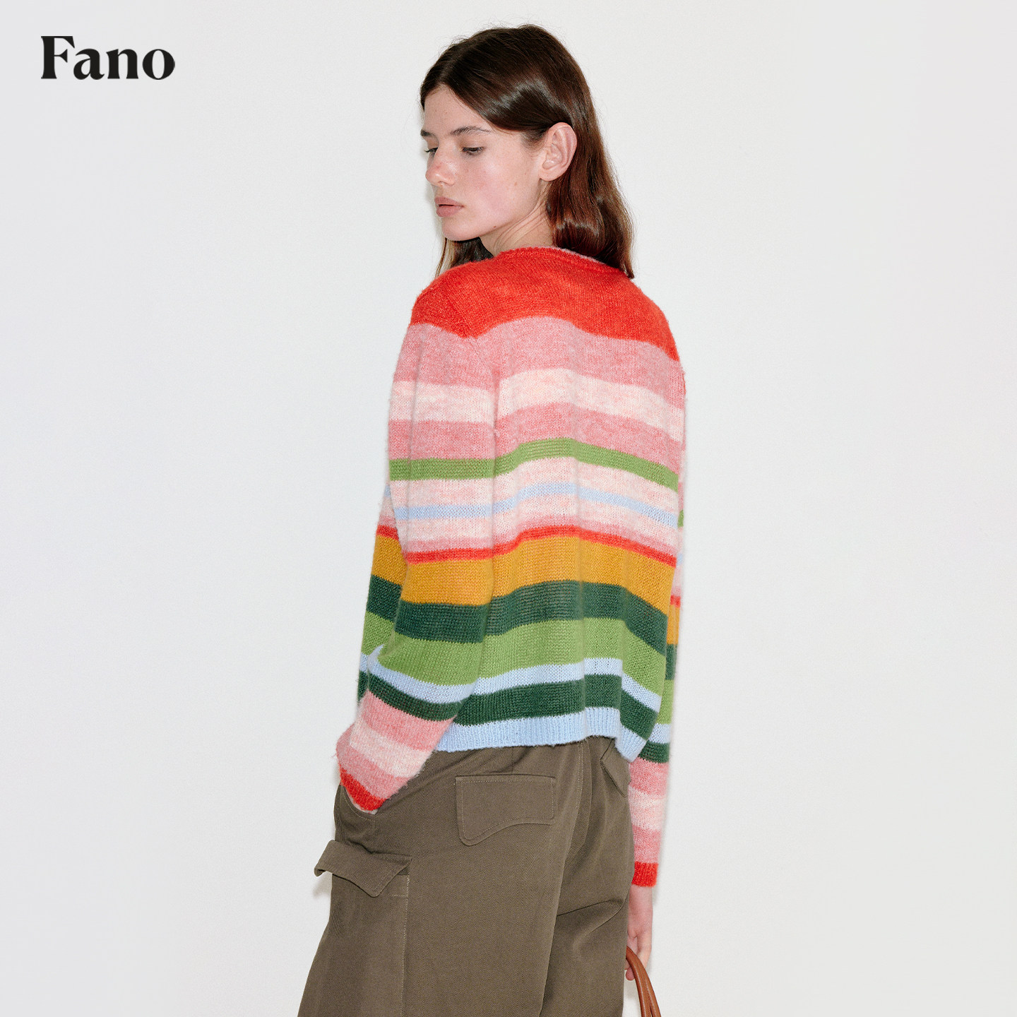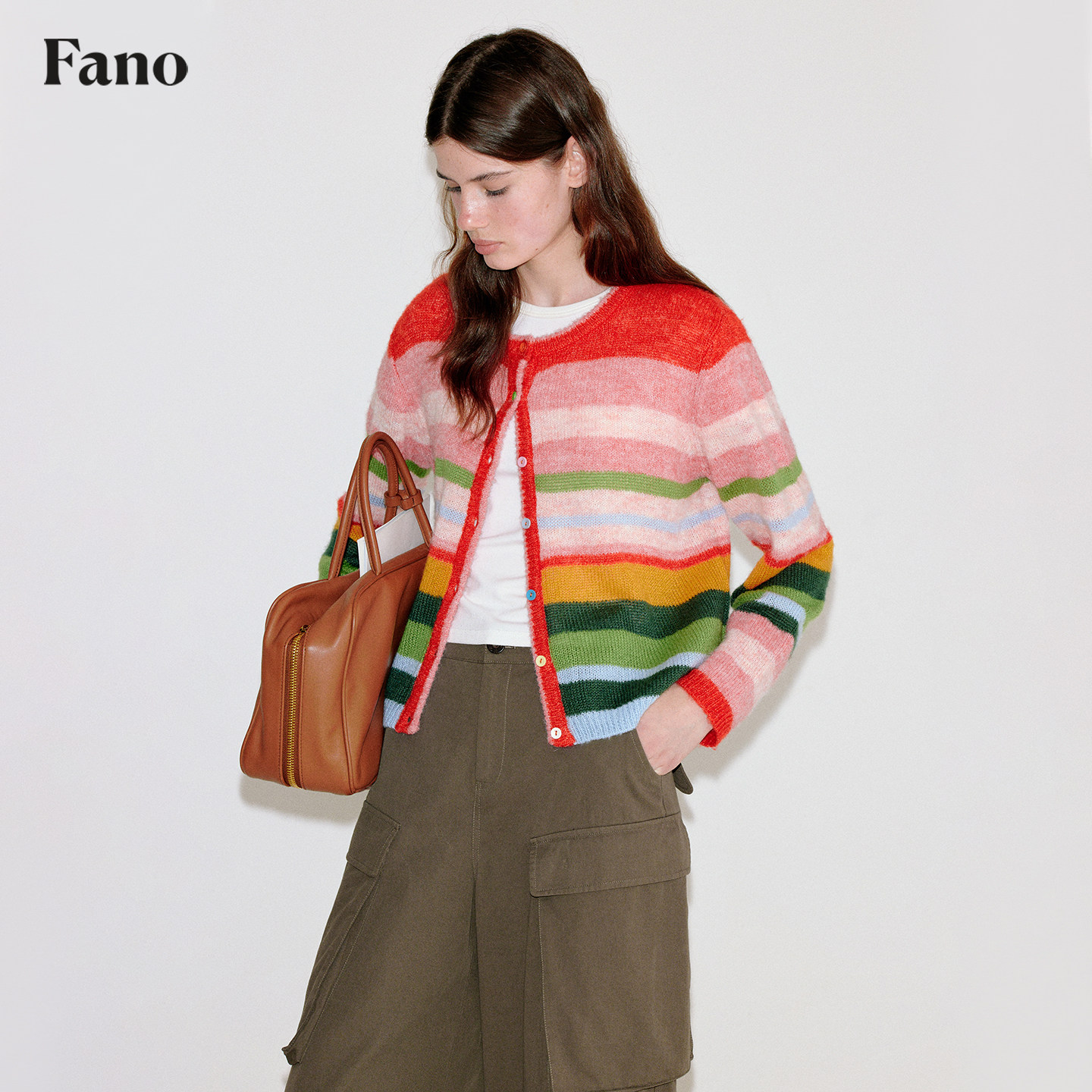 范洛Fano 小众彩虹撞色条纹圆领羊毛针织开衫上衣女高级感2026春