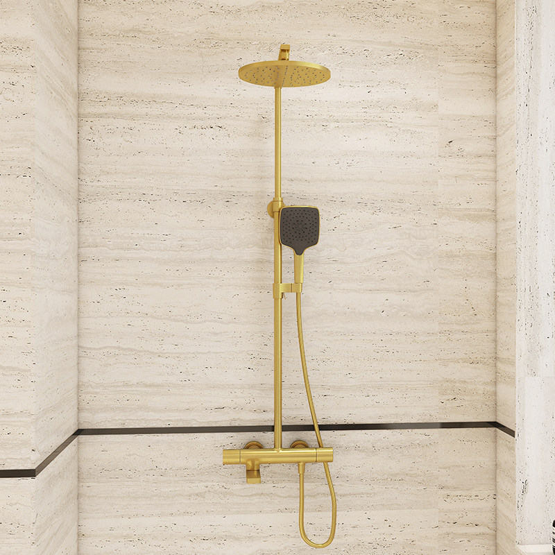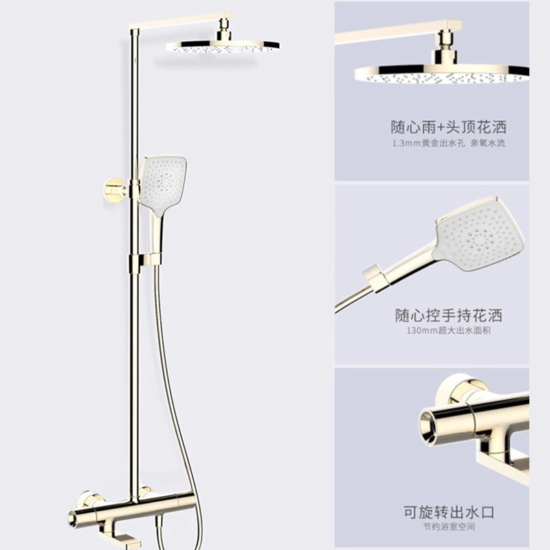 科勒柏诗三出水淋浴柱全铜摩登金恒温花洒明装挂墙式淋浴K-73111T