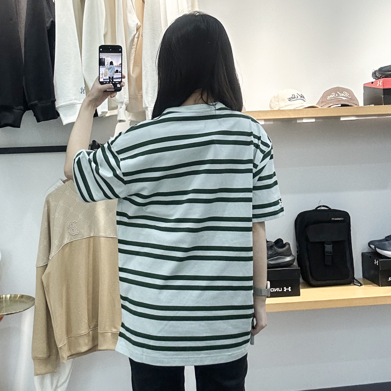 安德玛UA男女同款25春夏新款运动休闲训练横条纹短袖T恤6006003