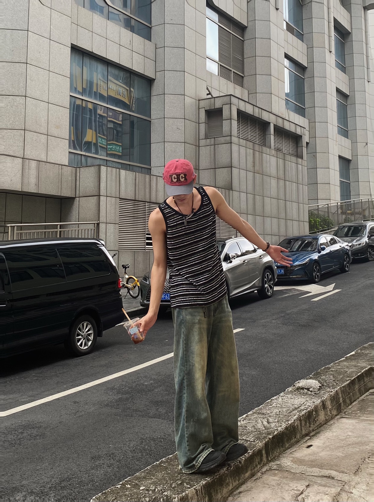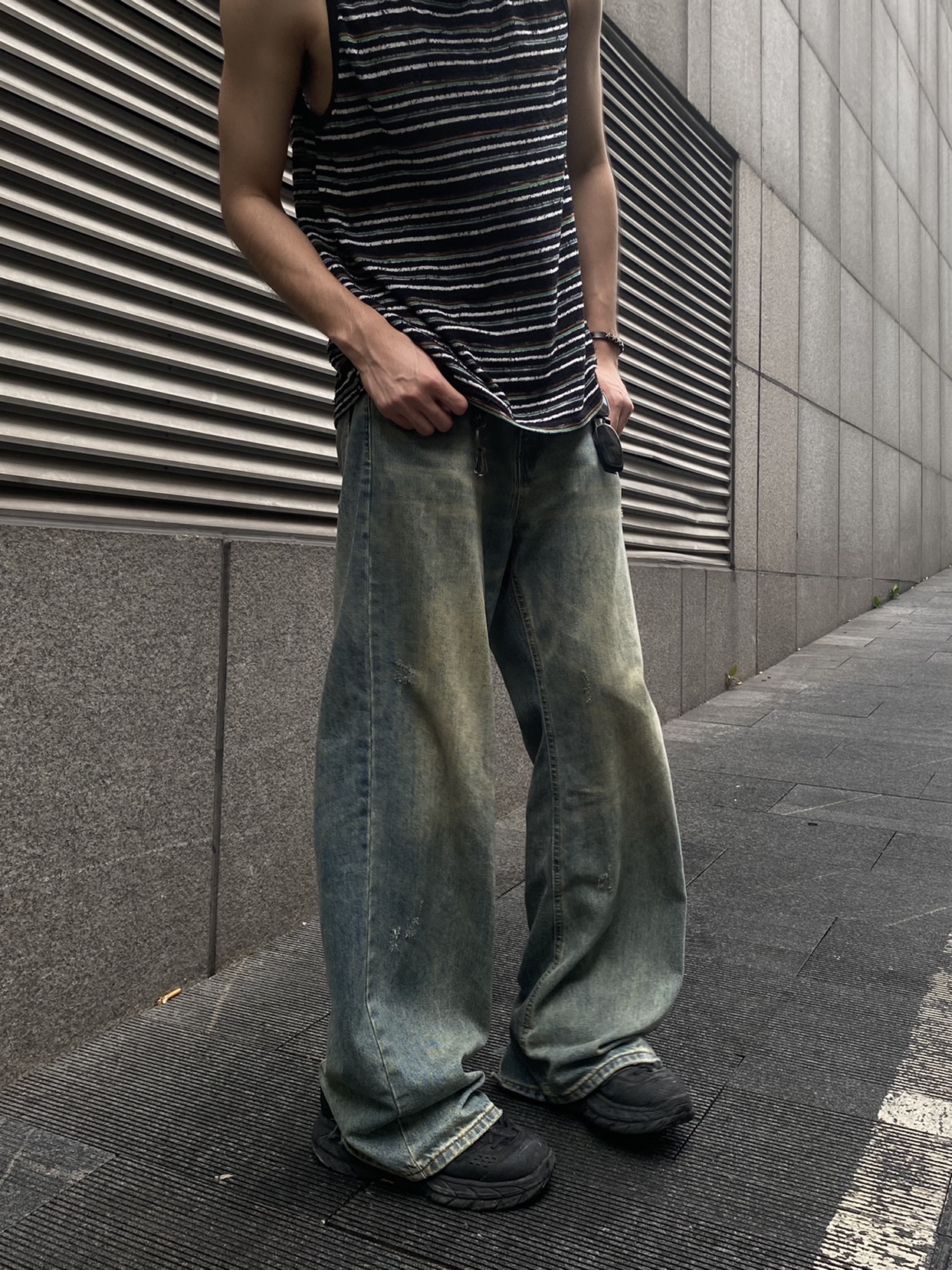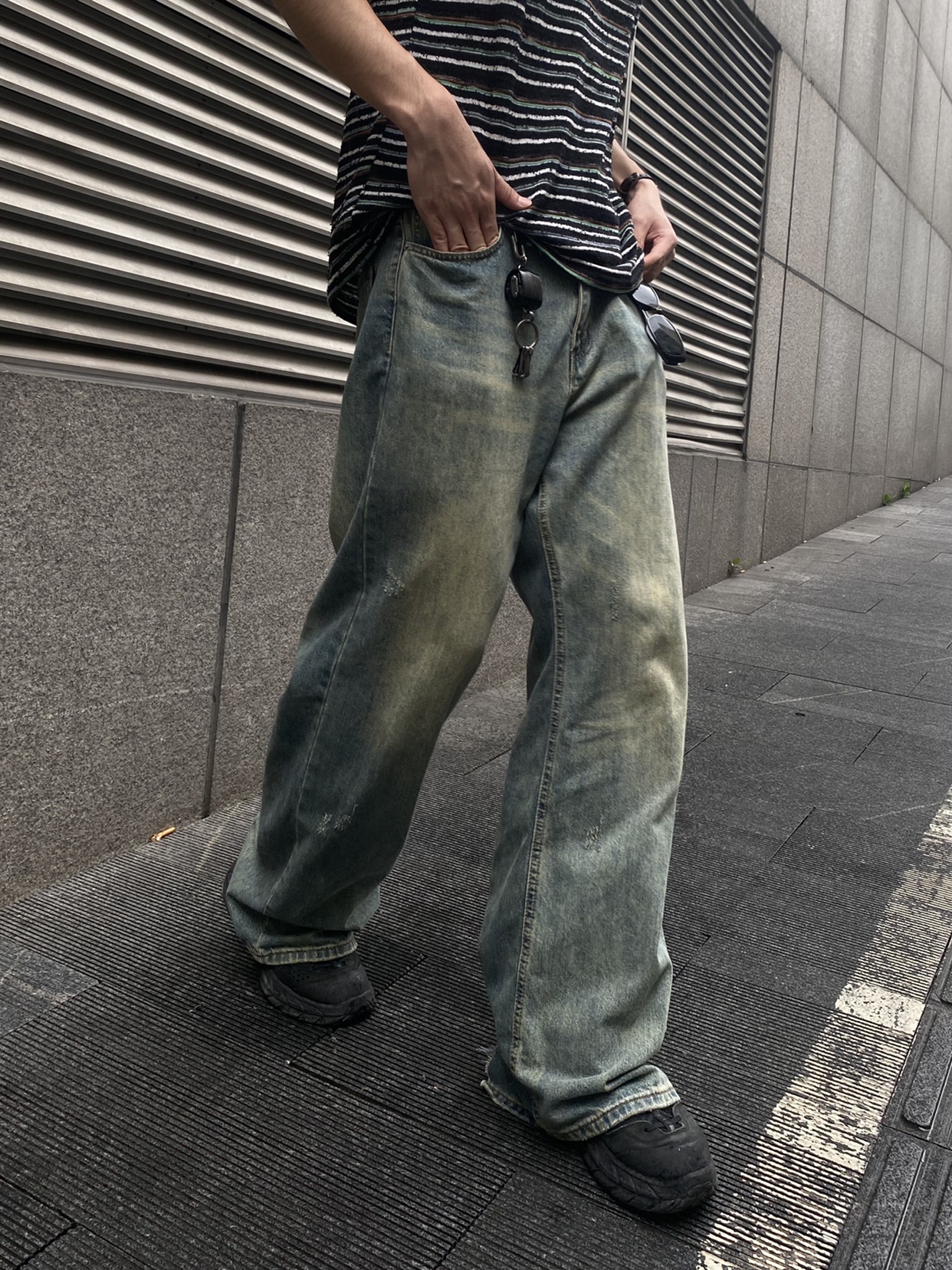 TWORED 美式复古水洗做旧牛仔裤男裤脚破坏休闲宽松百搭直筒长裤