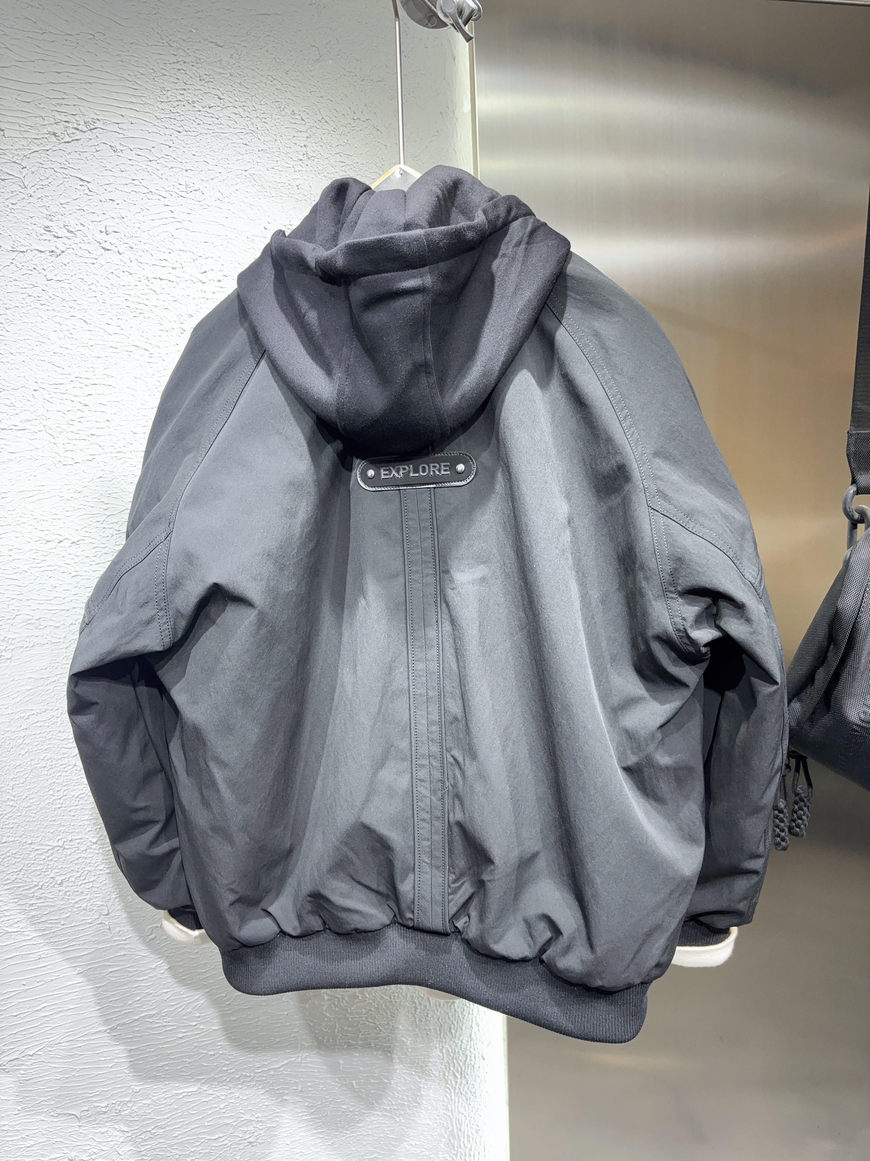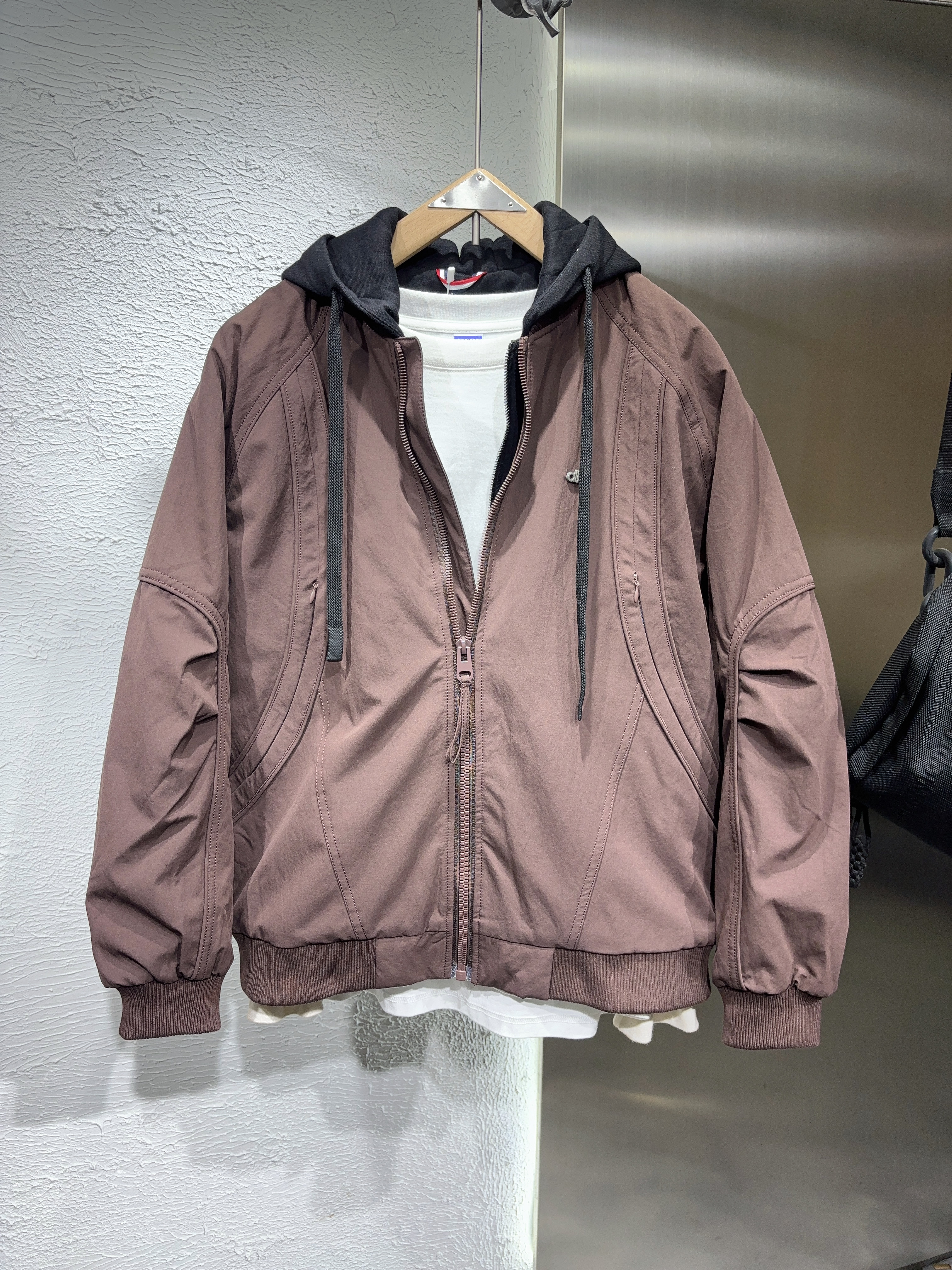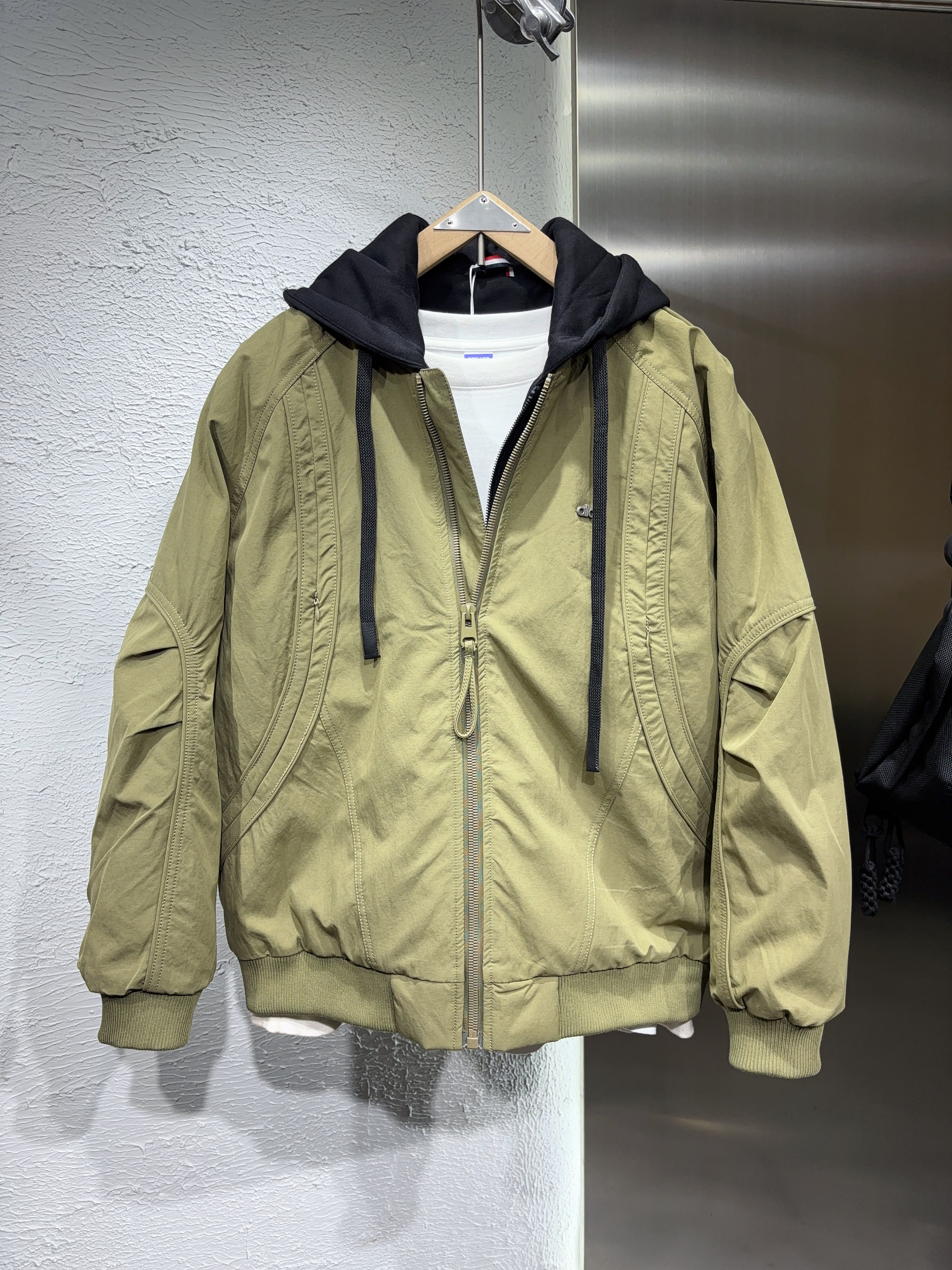 2025新款美式连帽假两件薄棉加厚棒球服夹克秋冬季痞帅宽松外套