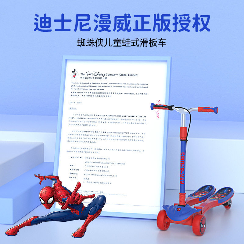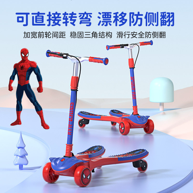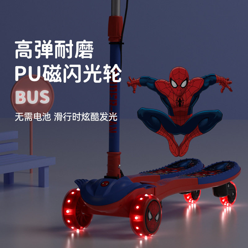 迪士尼漫威蜘蛛侠儿童蛙式车3-14岁初学者单脚踏板滑溜溜车滑板车