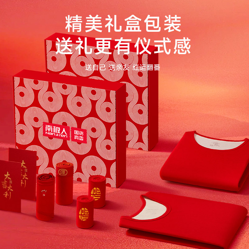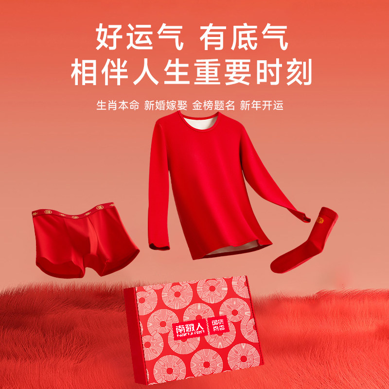 南极人本命年大红色结婚男士保暖内衣套装无痕秋衣秋裤女2025蛇年