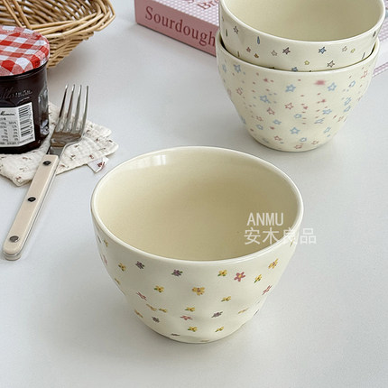 安木良品 韩国ins风碎花星星奶敷敷手捏陶瓷汤碗早餐酸奶麦片碗