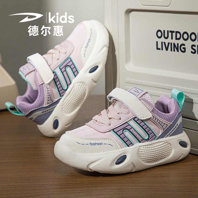 德尔惠儿童鞋子女2025新款春秋款女孩防滑耐磨学生舒适女童运动鞋