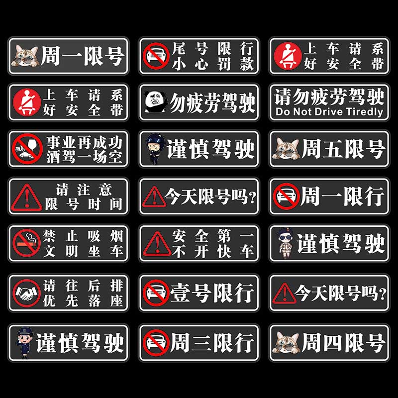 汽车注意限行限号磨砂车贴司机提醒车内警示提示创意标识装饰贴纸
