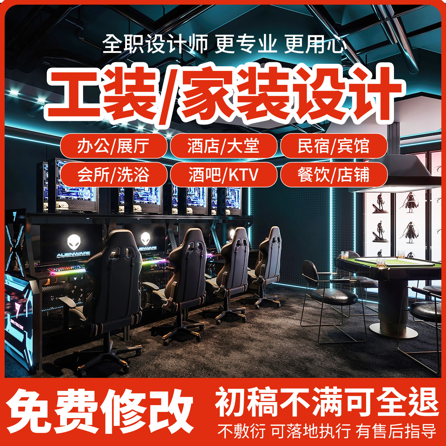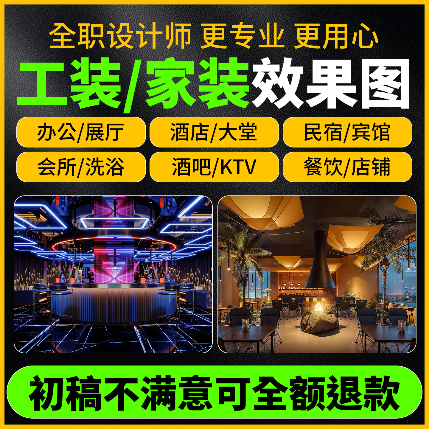 3D效果图制作CAD代画施工图工装酒吧酒店办公室展厅室内装修设计