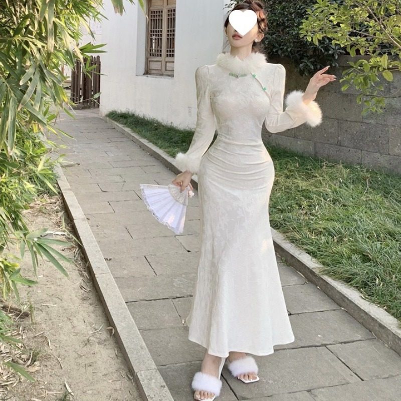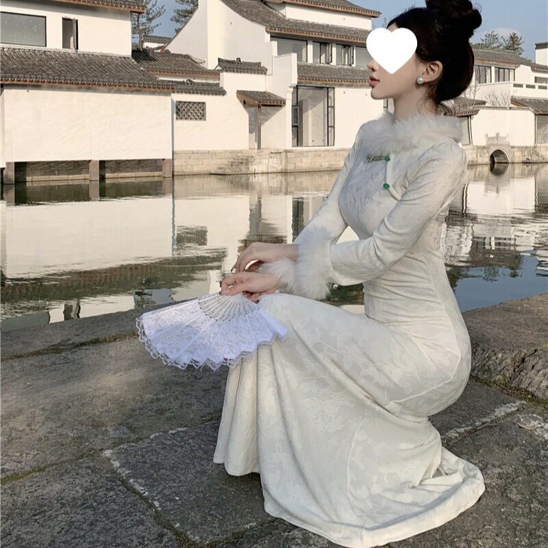 新中式国风复古连衣裙秋冬新款打底高级感气质收腰改良旗袍裙子女
