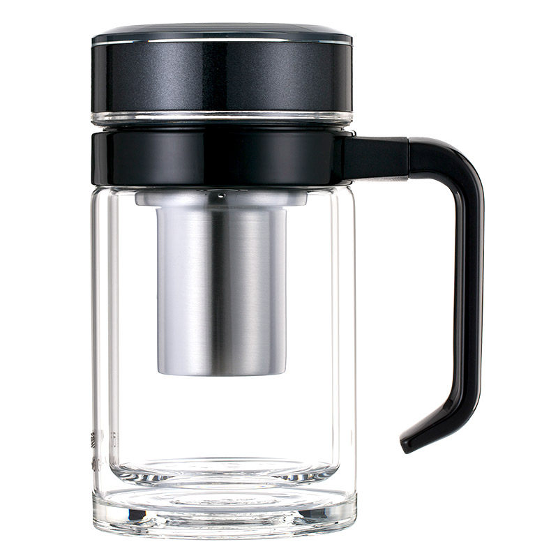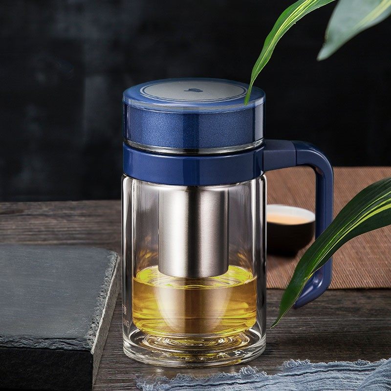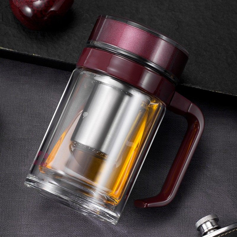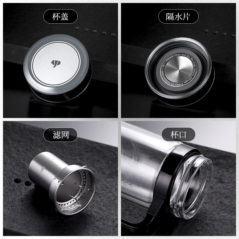 万象玻璃杯带把茶水分离过滤网泡茶杯子男女办公杯加厚水杯V221L