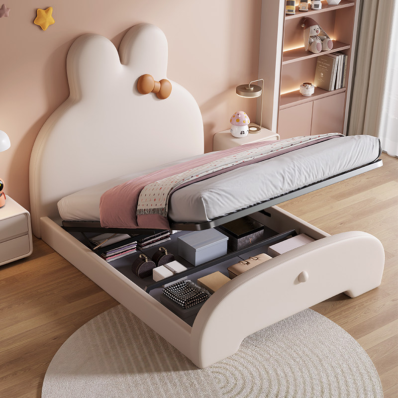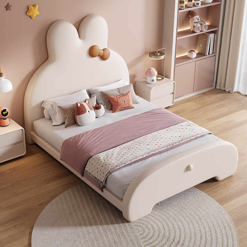 童趣兔子床奶油风真皮床网红儿童床女孩公主床现代简约卧室拼接床