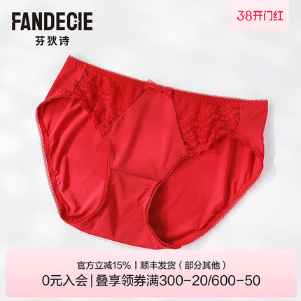芬狄诗商场同款红色内裤女性感蕾丝舒适透气包臀三角裤F200436