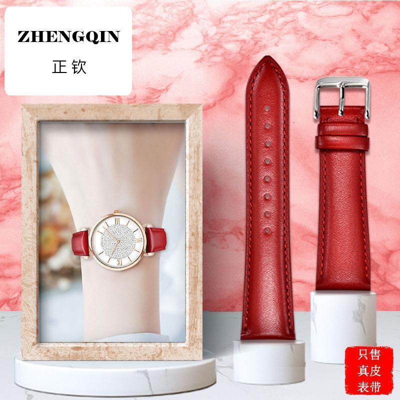 适用于阿玛尼白月光满天星AR11244满天星表带真皮平纹红色女14mm