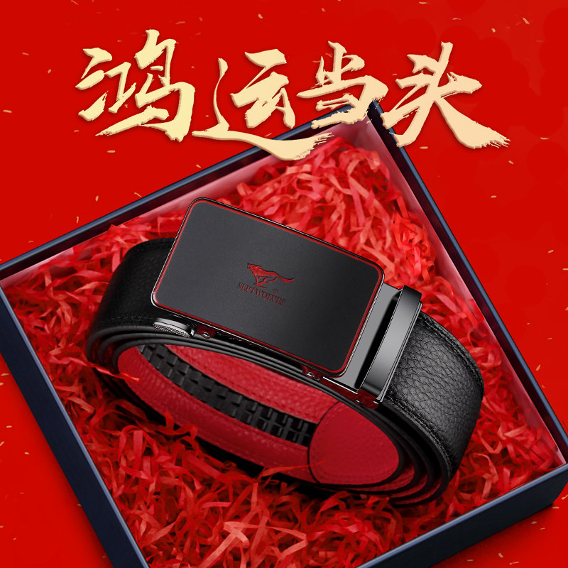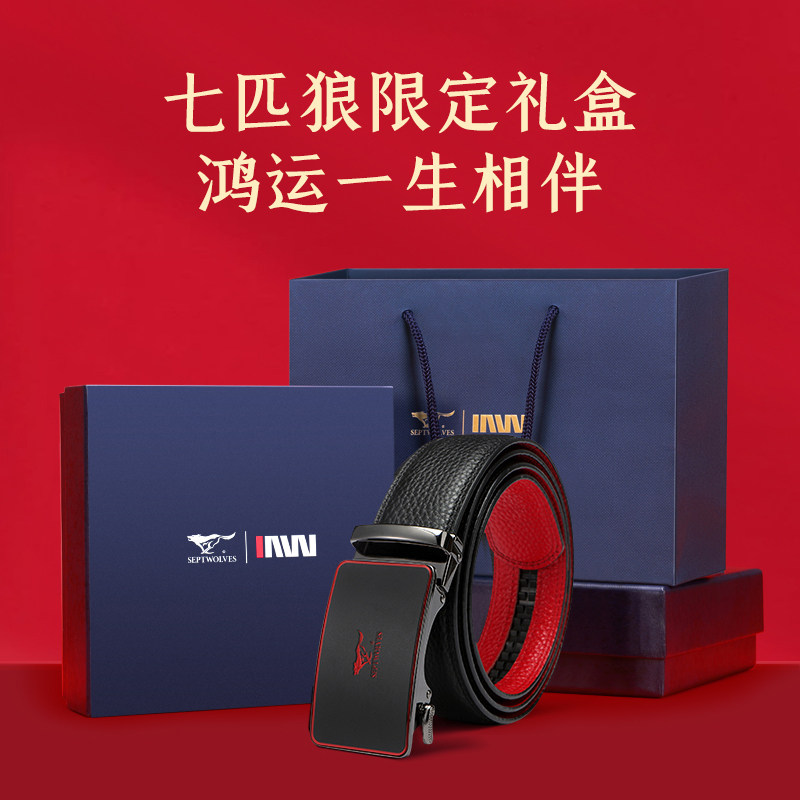 七匹狼2026马年本命年红腰带属马男结婚真皮红色皮带裤带男士礼物