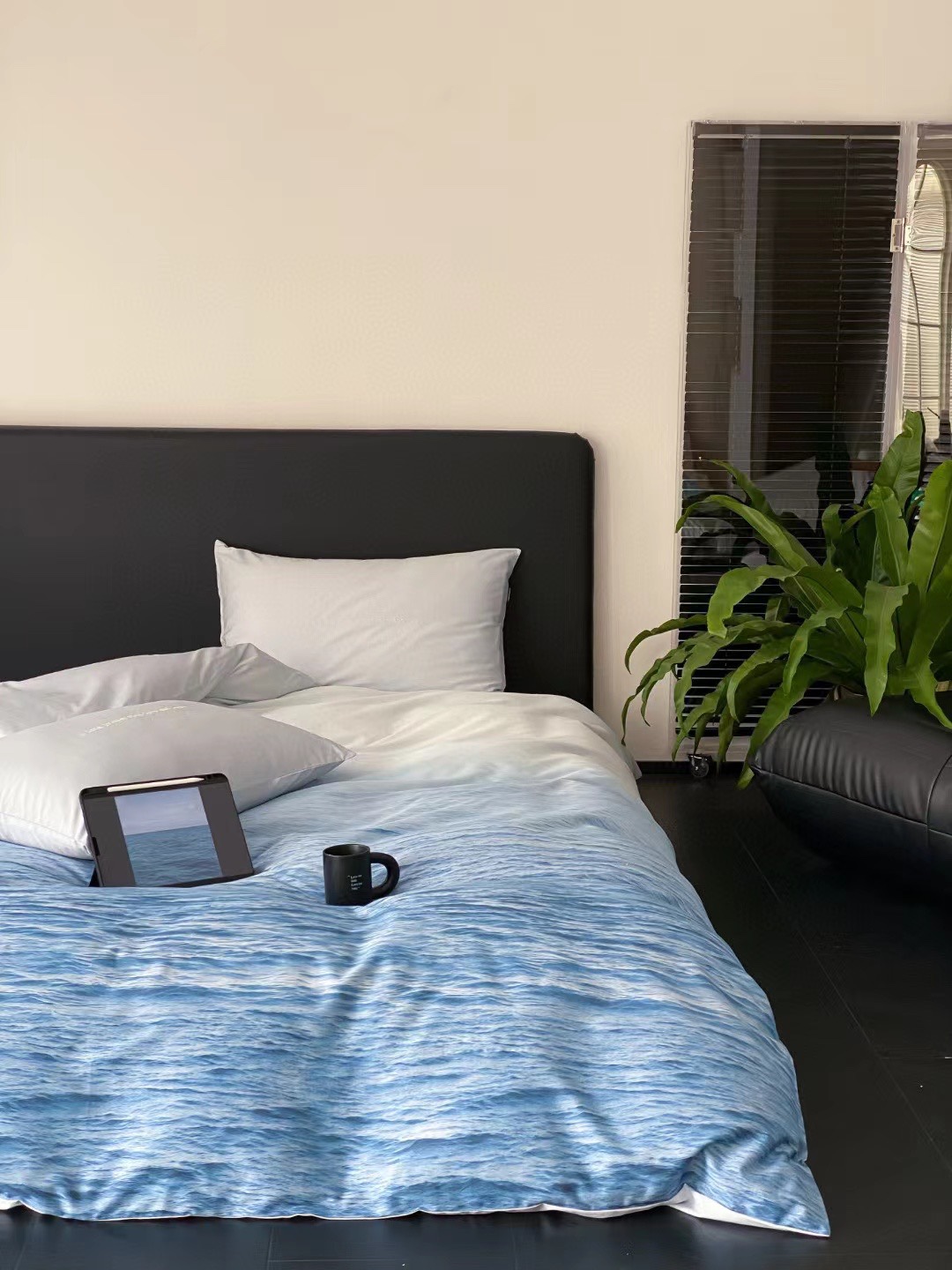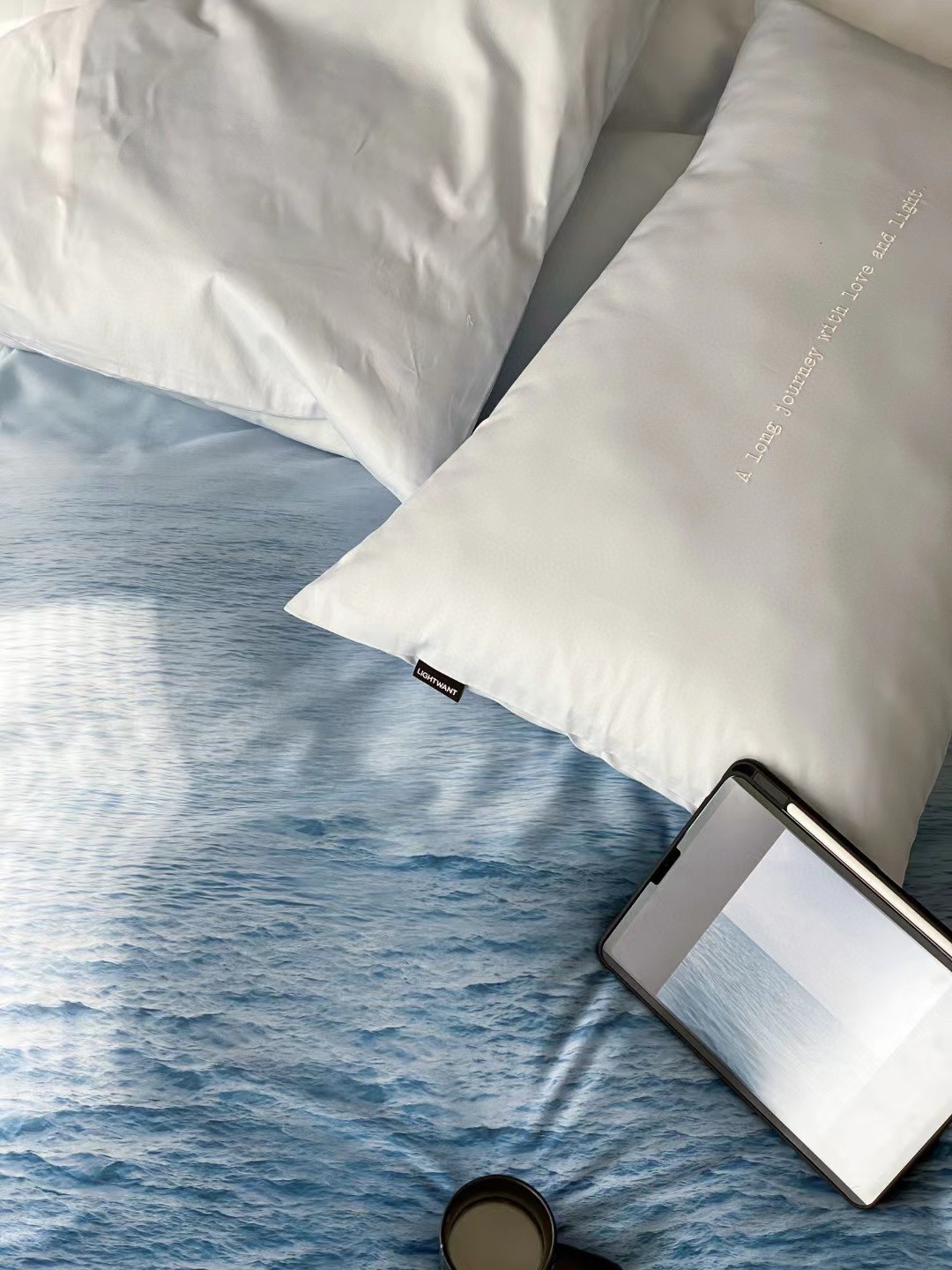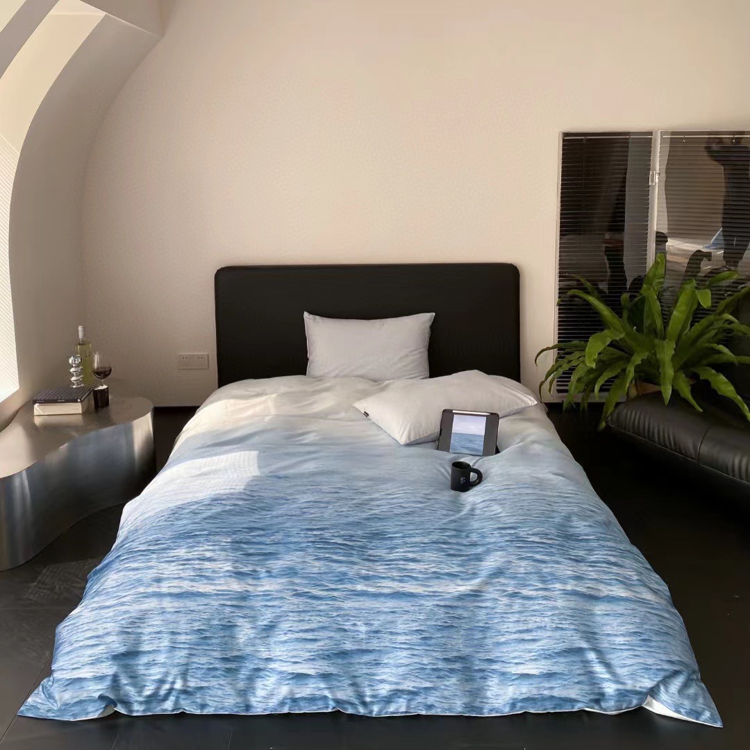 蓝色大海100支全棉新疆长绒棉四件套北欧风被套纯棉床单床上用品