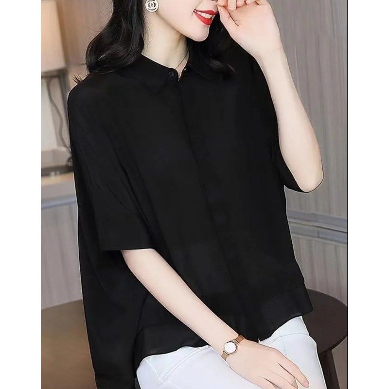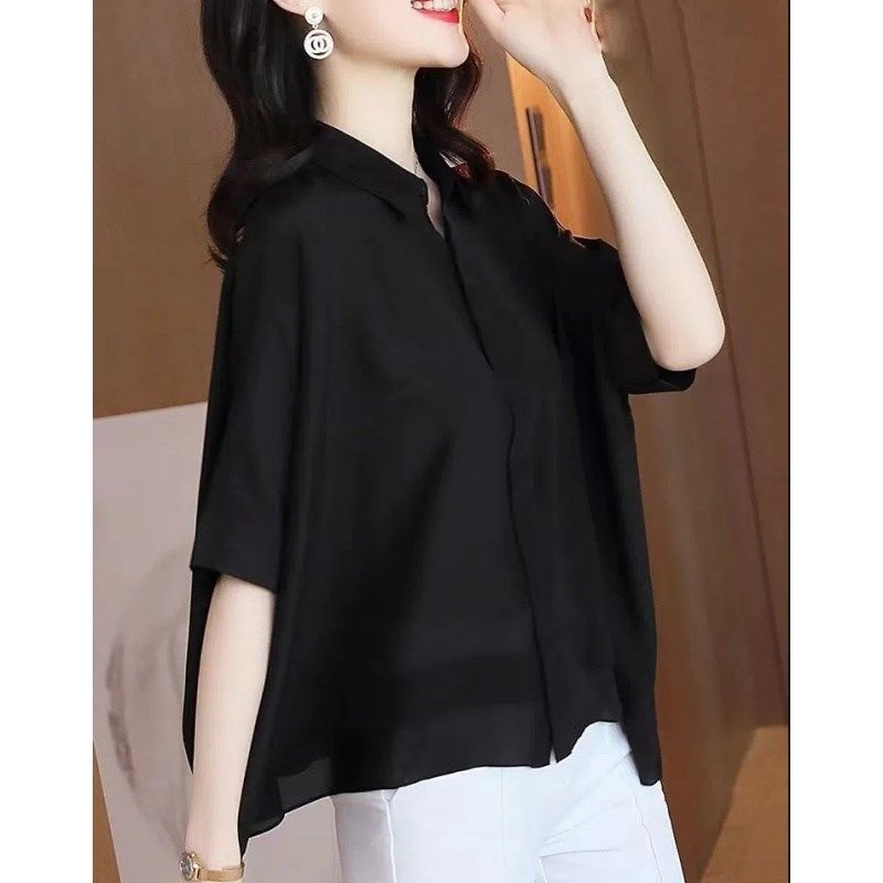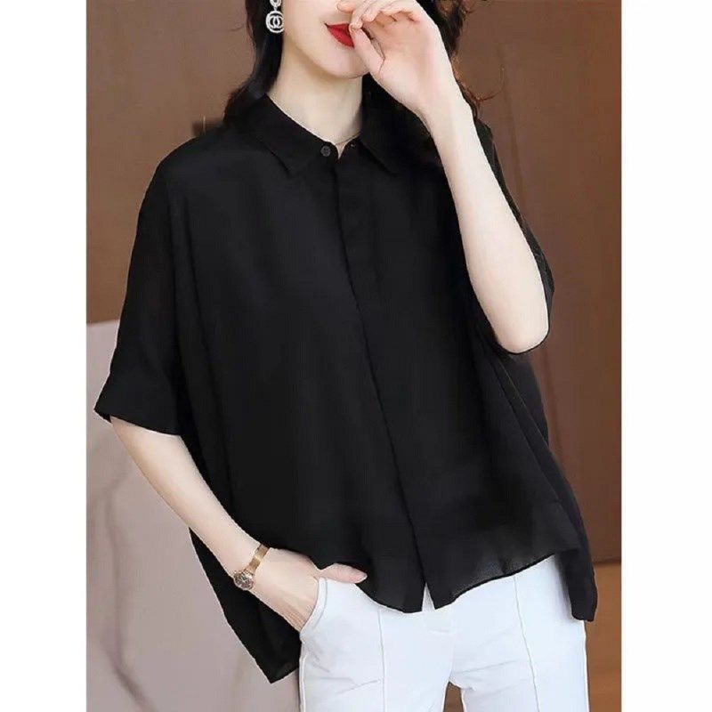 黑色雪纺衬衫女薄款2024夏季新款时尚百搭宽松显瘦短袖T恤上衣女