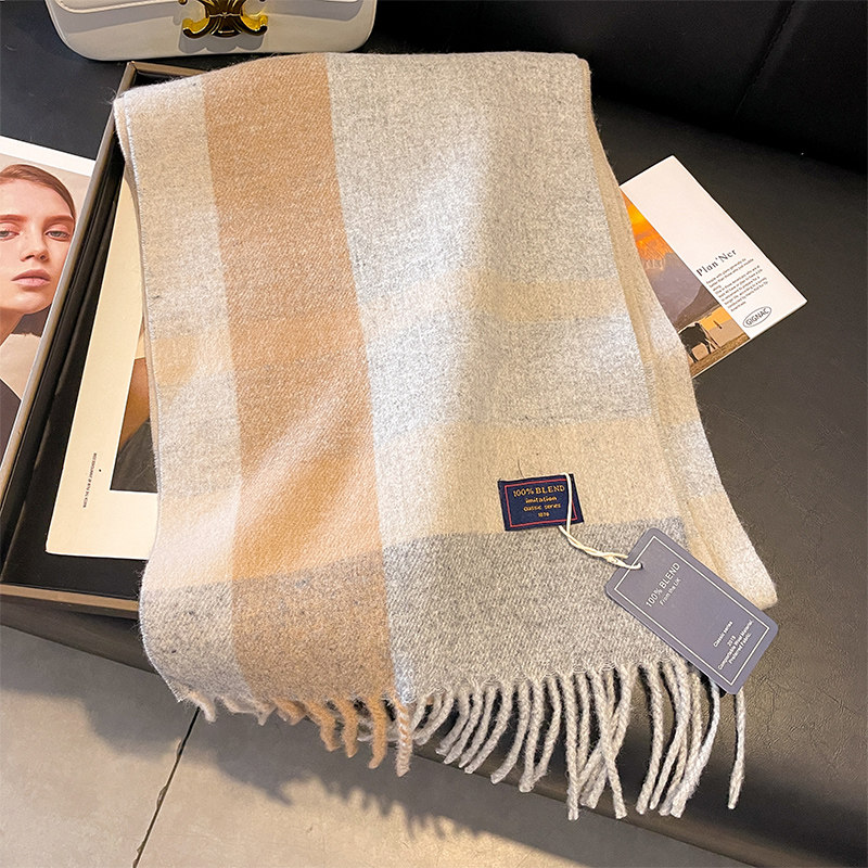 仿羊绒围巾冬季格纹款黑白风