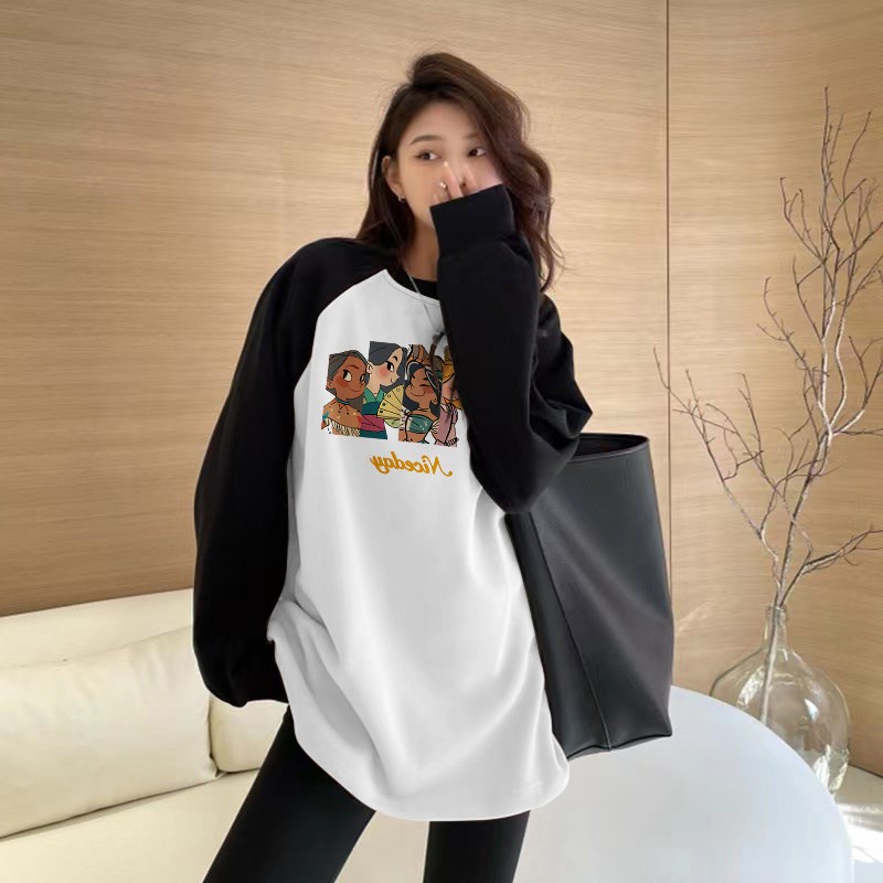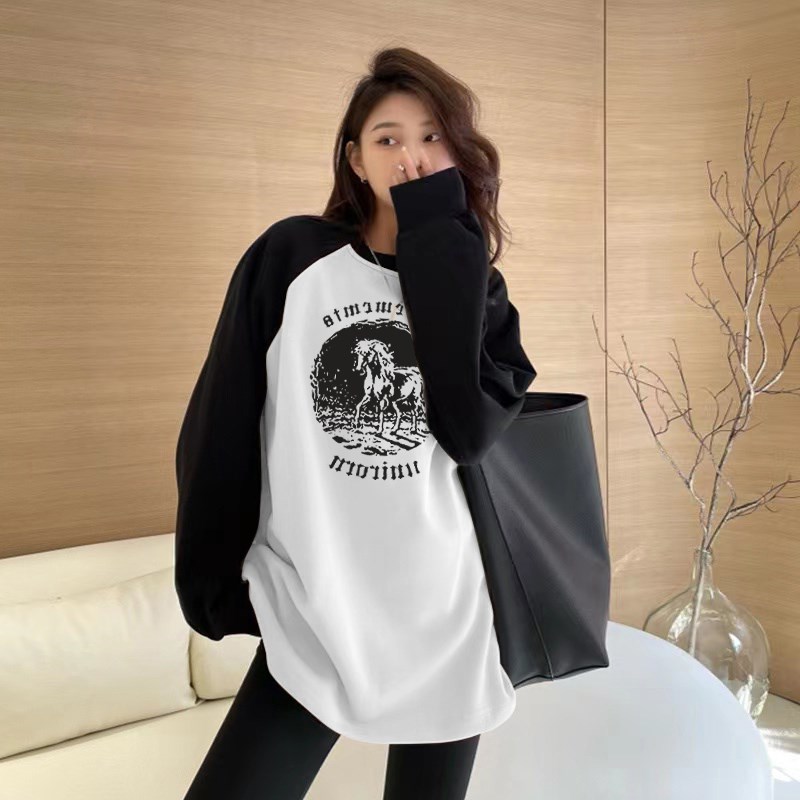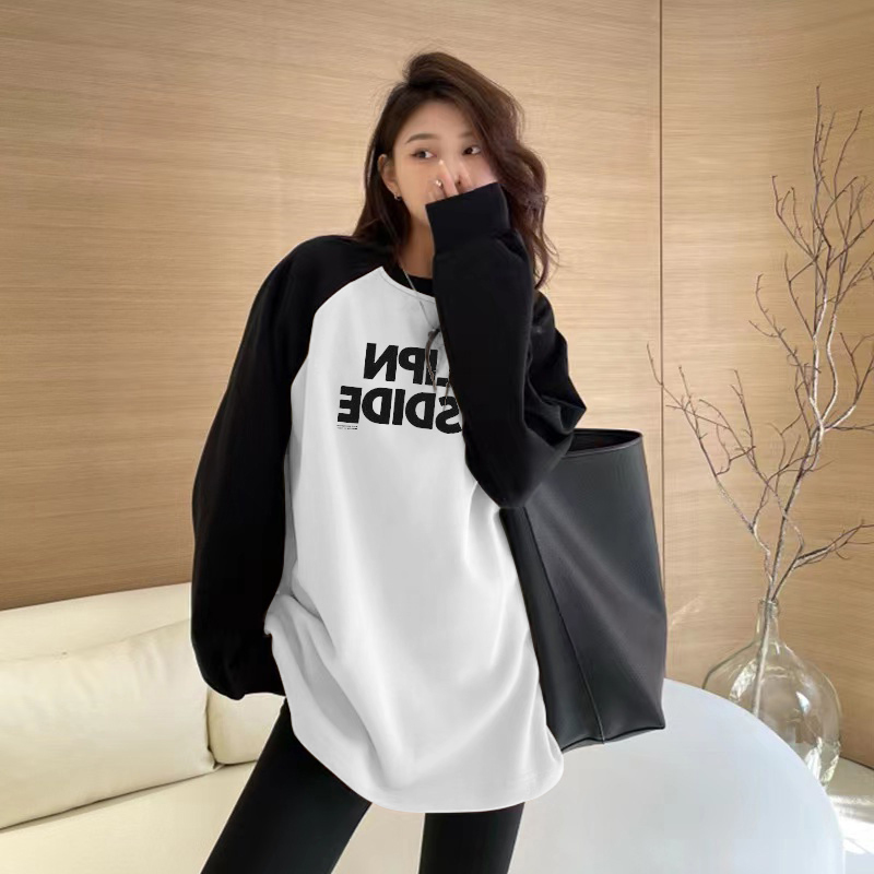 速发中长款打底衫2024早秋新款印花插肩袖卫衣搭配裤的上衣