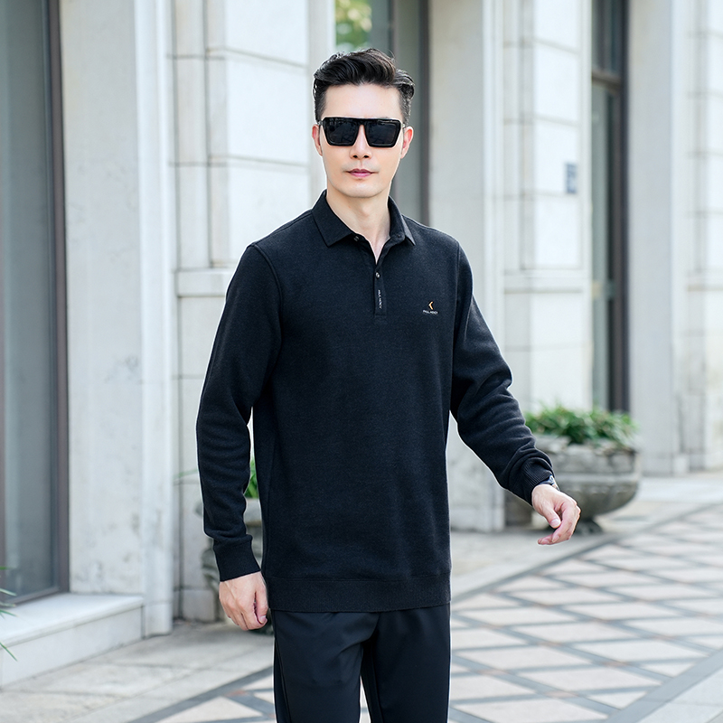 加长版加绒卫衣男T恤 195高个子翻领套头上衣防风保暖加厚针织衫