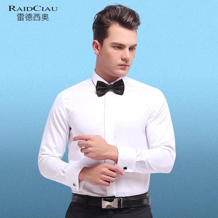 法式衬衫男长袖结婚婚礼西装纯棉免烫男士伴郎领结新郎袖扣白衬衣