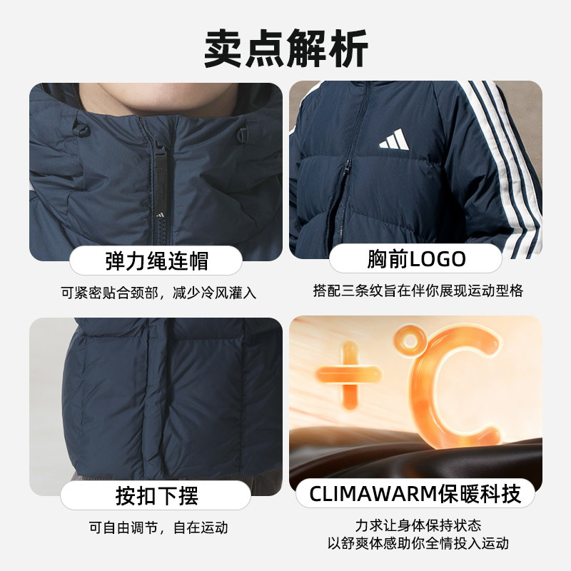 阿迪达斯官方正品长款羽绒服男装女装2025新款情侣连帽羽绒外套