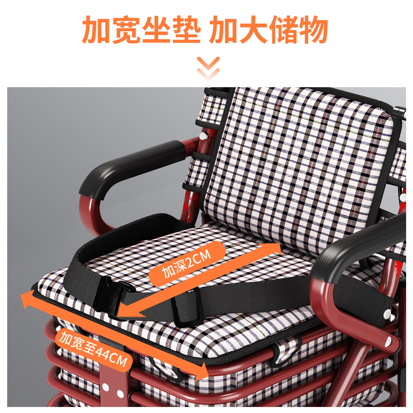 老人手推车可推可坐代步买菜购物老年人行走助行便携可折叠小推车