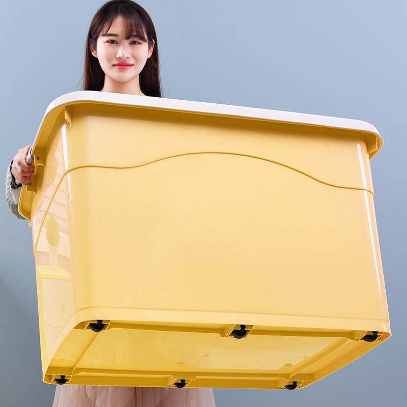 收纳箱加厚特大号家用塑料衣服储物收纳盒滑轮搬家车载周转整理箱