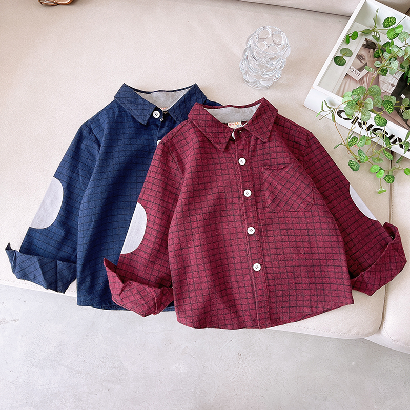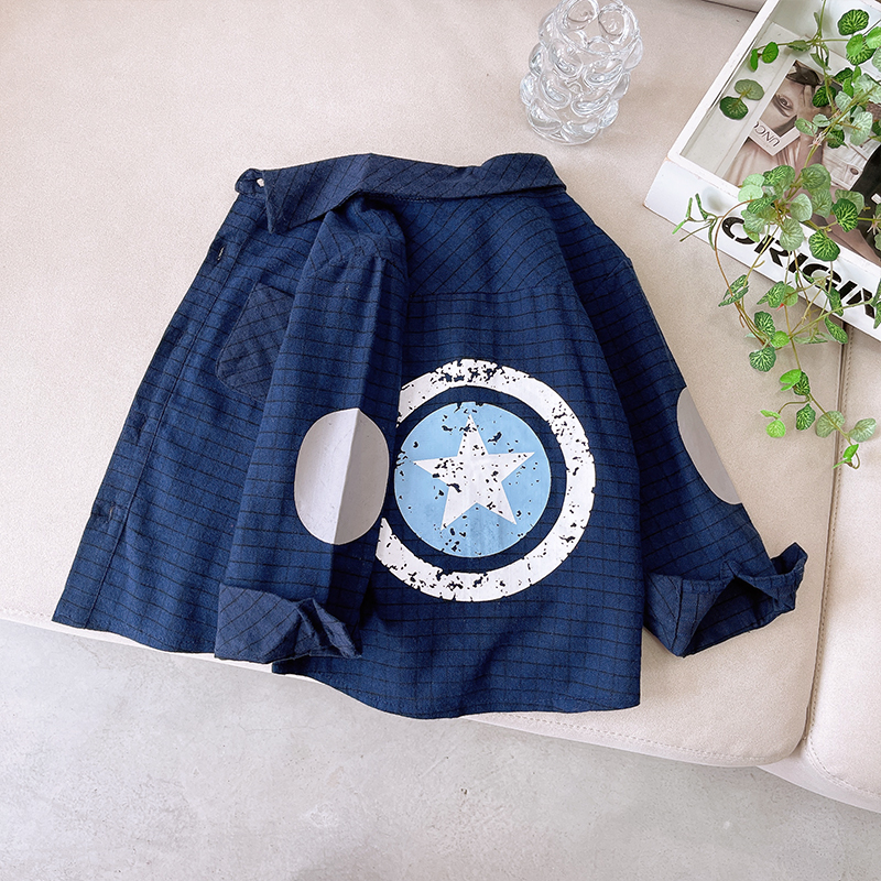 【原29.99现10】男女童韩版宝宝洋气暗格队长印花长袖衬衣潮