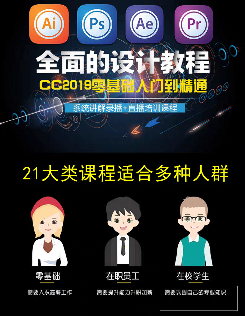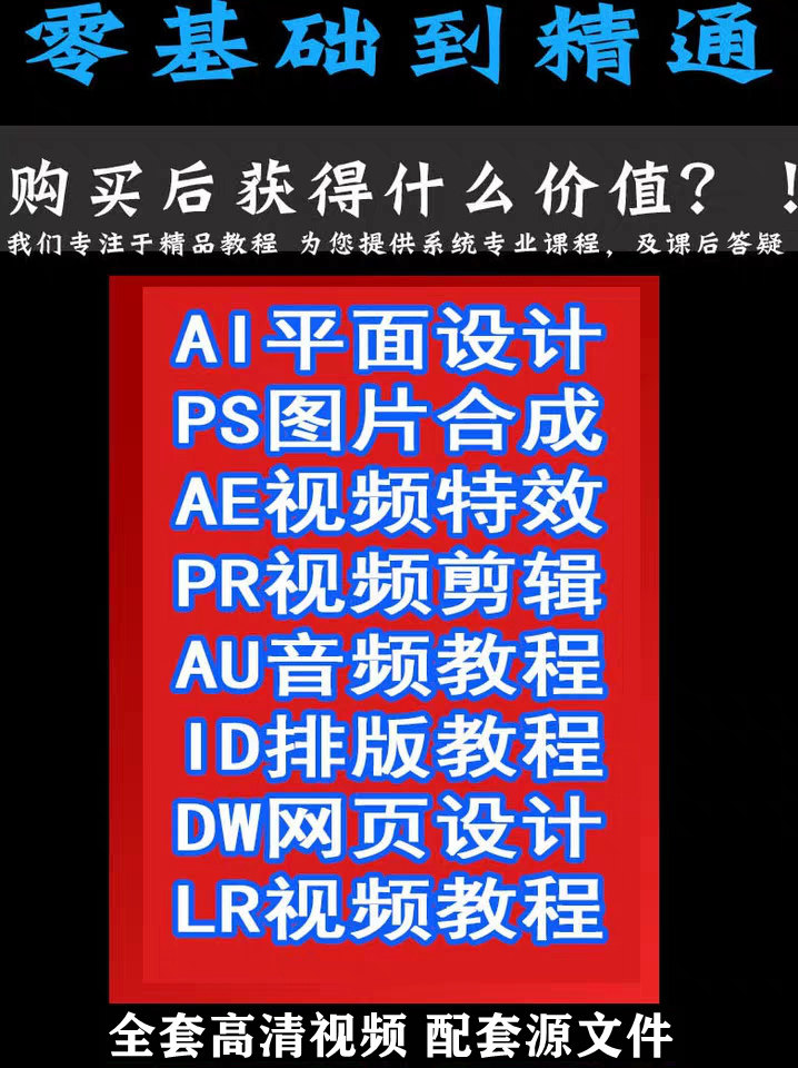 全套ps pr ae ai au lr dw软件教程视频零基础修图调色动画设计