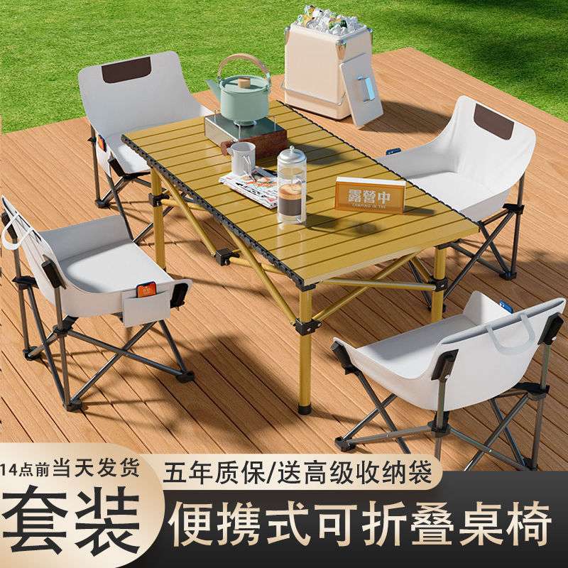 户外折叠桌椅便携式野餐桌子蛋卷月亮露营便携躺椅椅子折叠桌套装