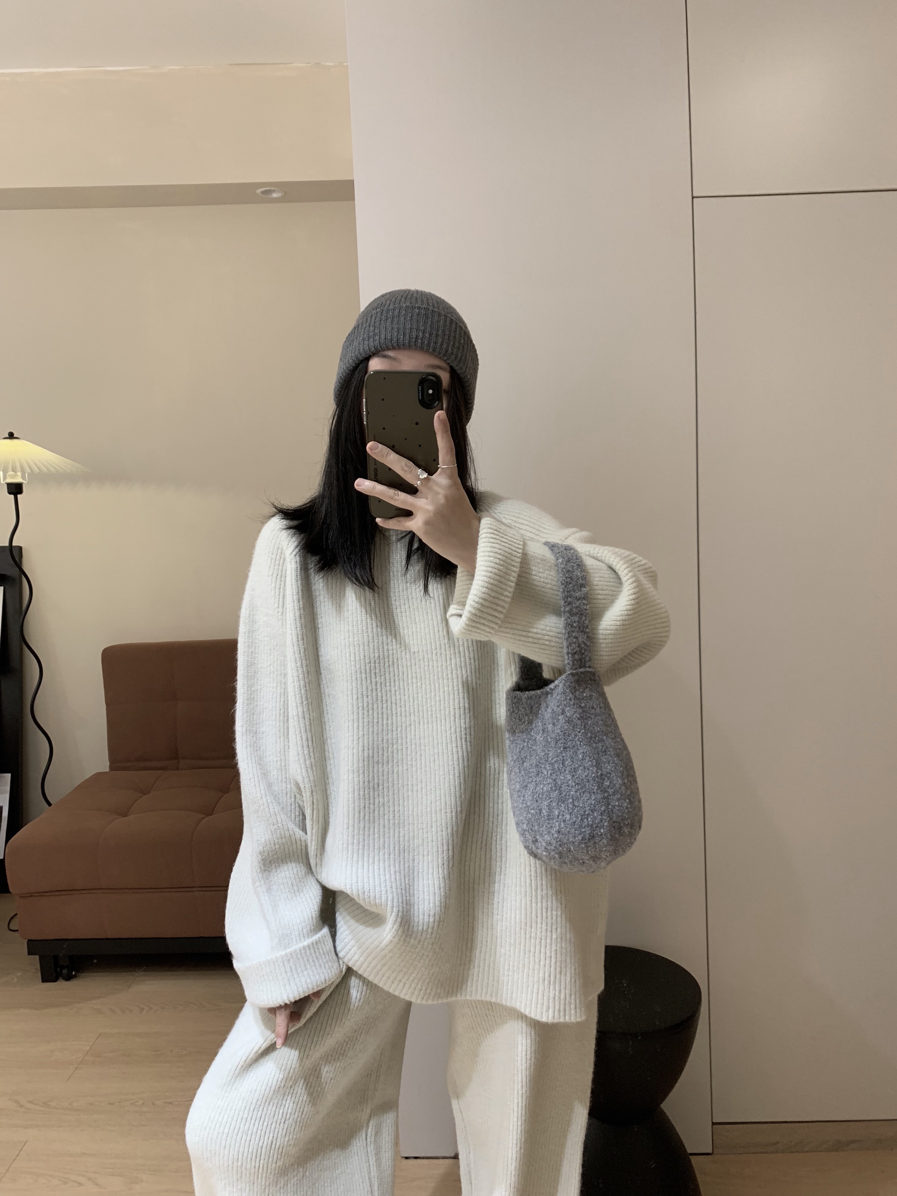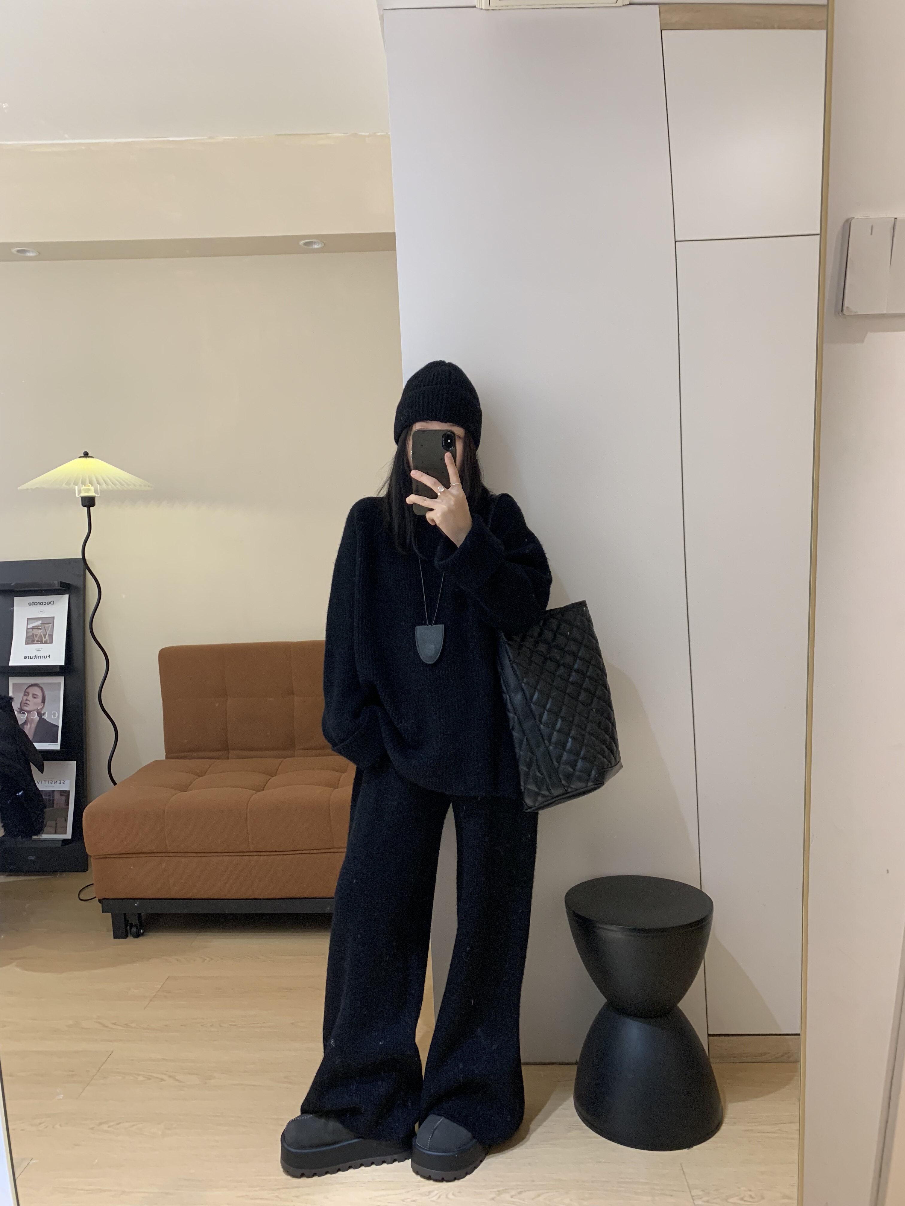 松弛感加厚圆领套头毛衣针织衫阔腿裤两件套装秋冬新品女装宽松