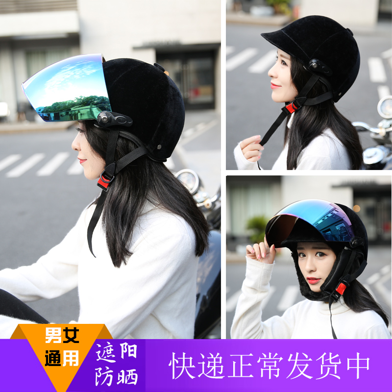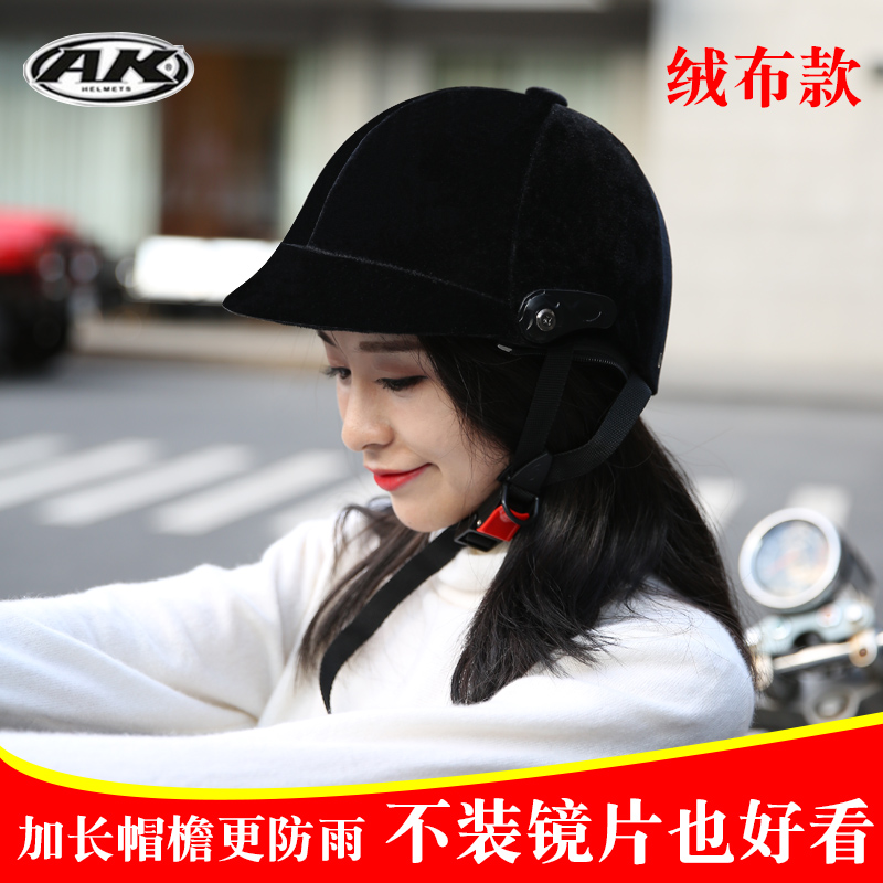 AK丝绒马术盔3C认证电瓶电动车头盔夏季防晒女士四季秋冬款安全帽
