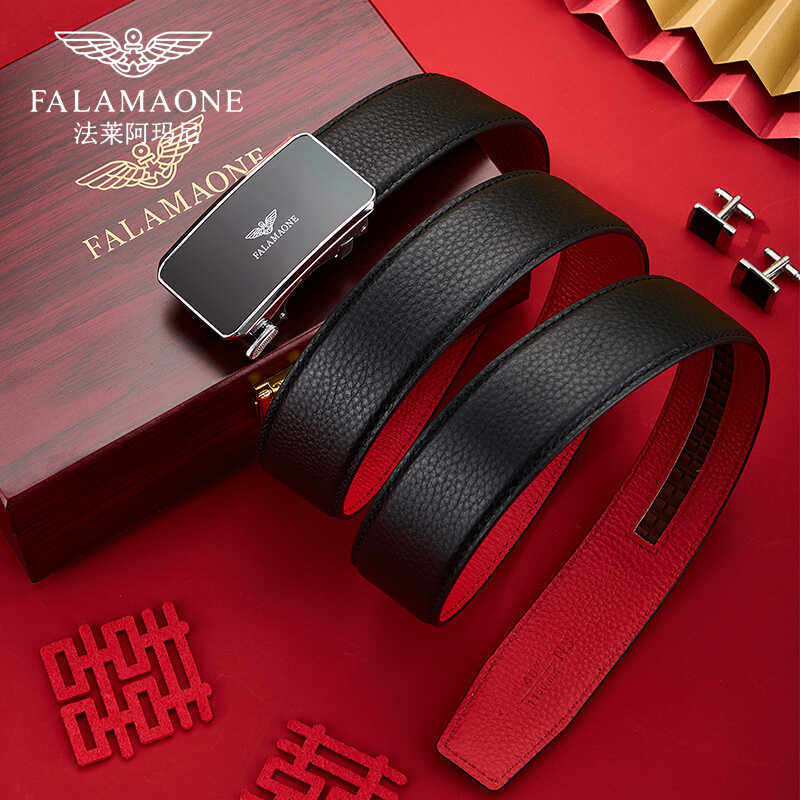 法莱阿玛尼结婚男士皮带真皮2025新款本命年红腰带奢侈品转运礼物