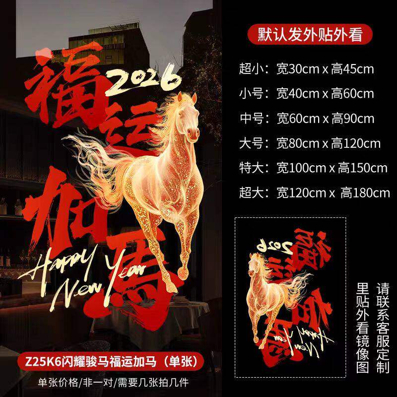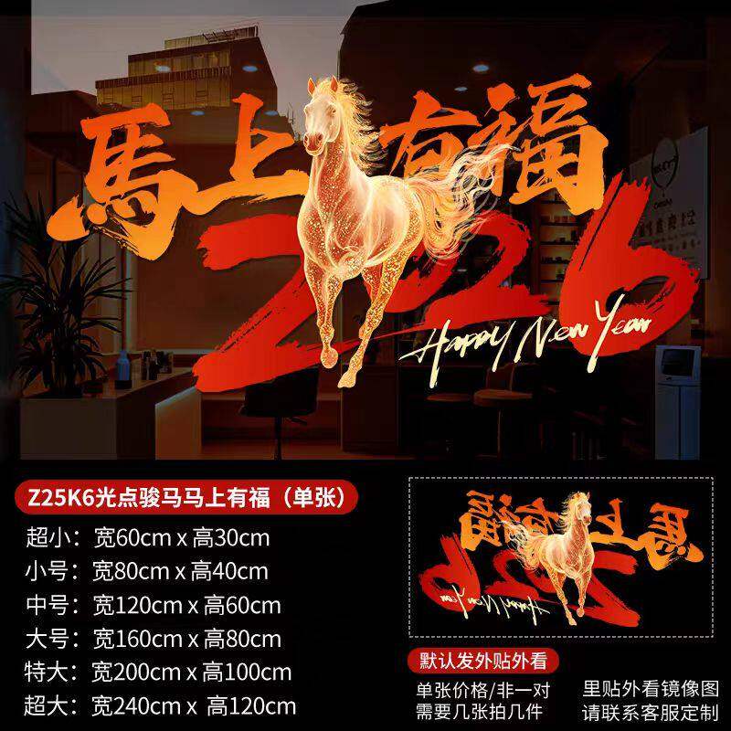 马年春节装饰品玻璃门贴纸2026过年氛围静电商场新年窗花马到成功