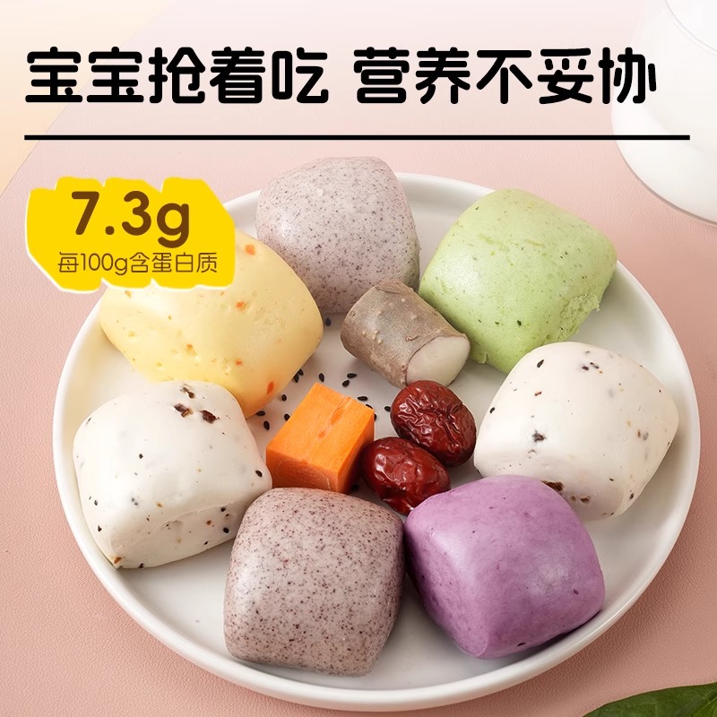 【无添加剂】儿童果蔬小馒头彩虹卡通包早餐包无色素杂粮包主食