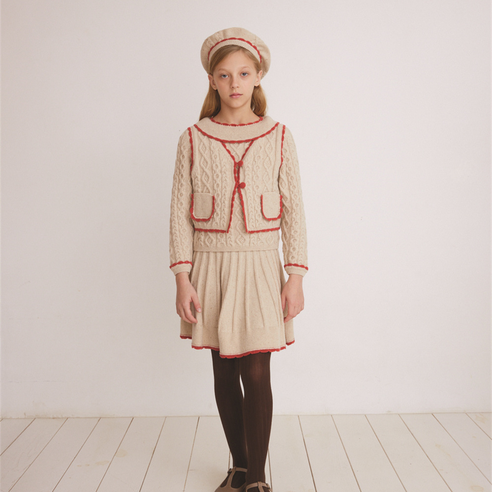 bebe organic25秋冬新款女童贝雷帽针织马甲衬衣半裙连衣裙打底衣