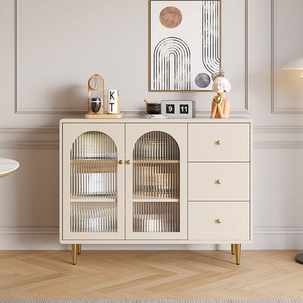 奶油风餐边柜现代简约置物柜法式客厅家用收纳柜酒柜靠墙储物柜