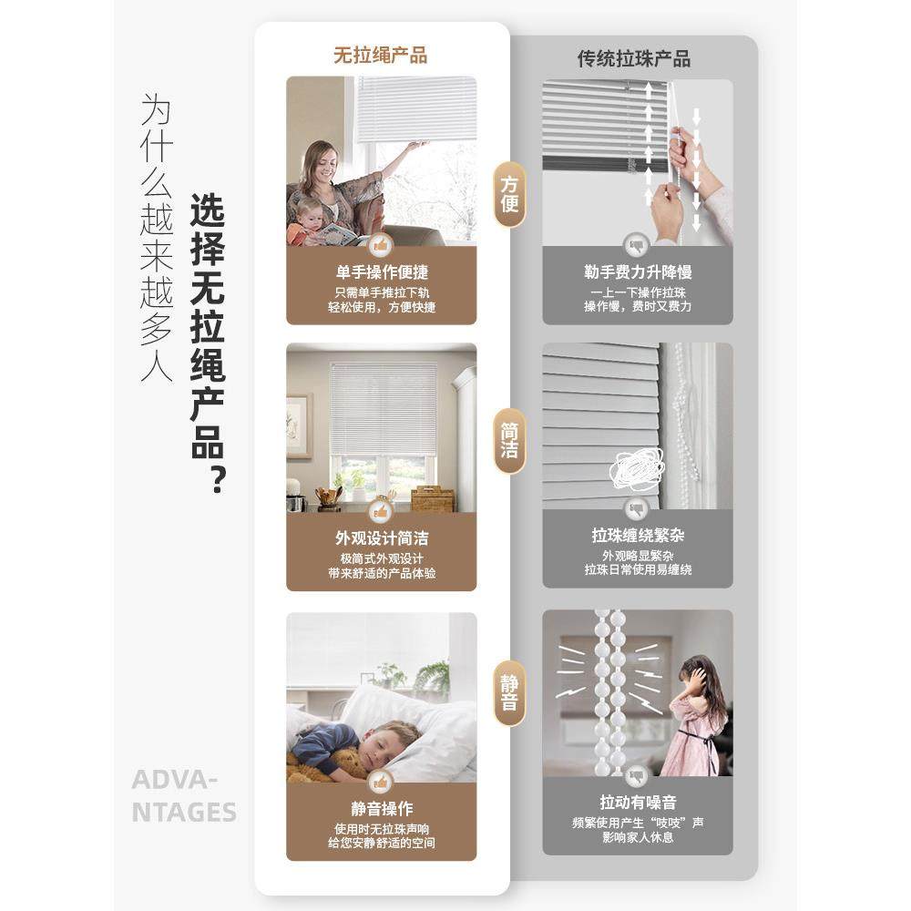 慕安娜无绳推拉免打孔防窥铝百叶窗帘卫生间厨房遮光防水防晒卷帘