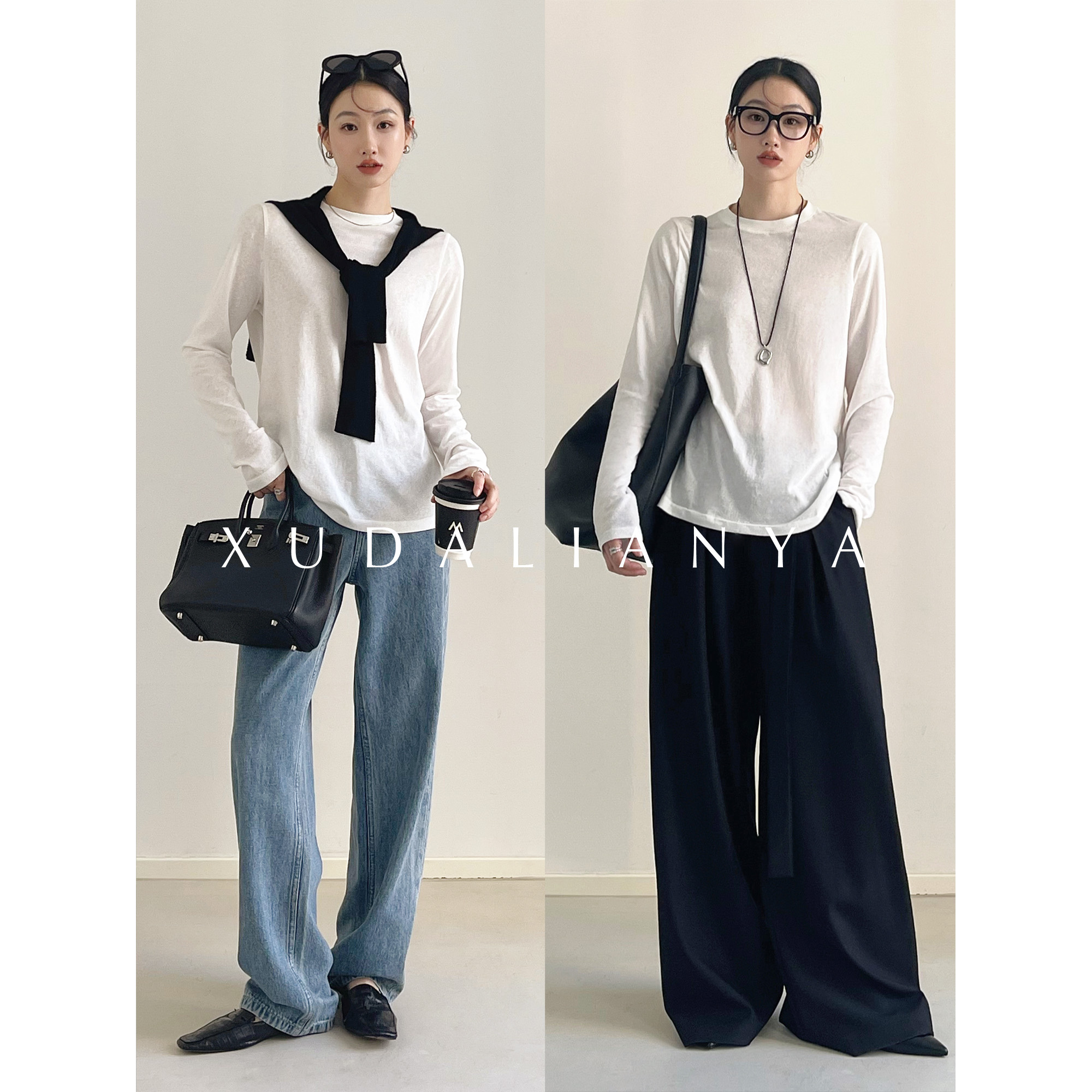徐大脸吖定制 干爽凉爽新疆棉tee上衣春基础款宽松长袖白色T恤女