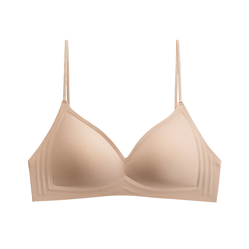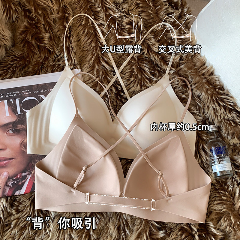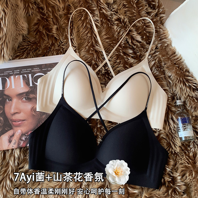 山茶花香氛无痕轻薄法式三角杯内衣女闪钻细肩带聚拢交叉美背文胸