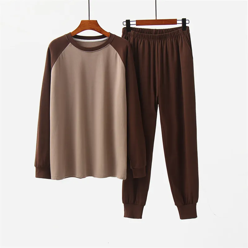 男士插肩袖家居服卫衣套装保暖加绒睡衣宽松大码卫衣卫裤两件套