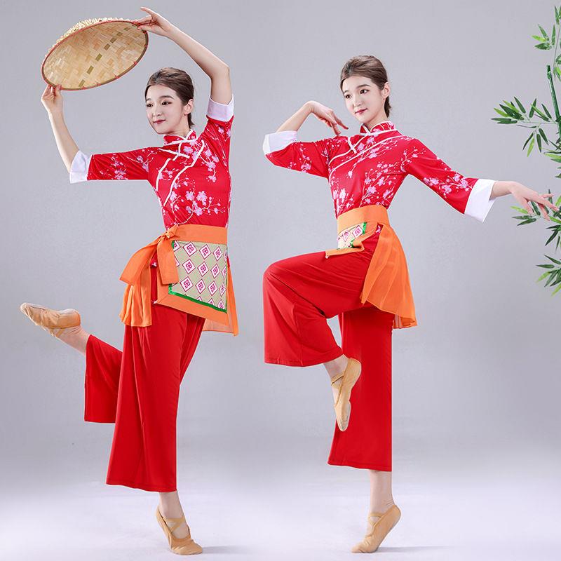 秧歌服演出服女新款夏季村姑采茶舞服装民族舞蹈服广场舞套装2023