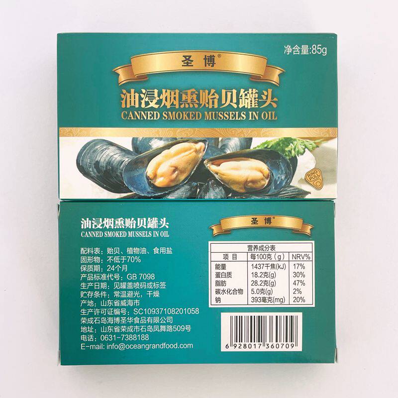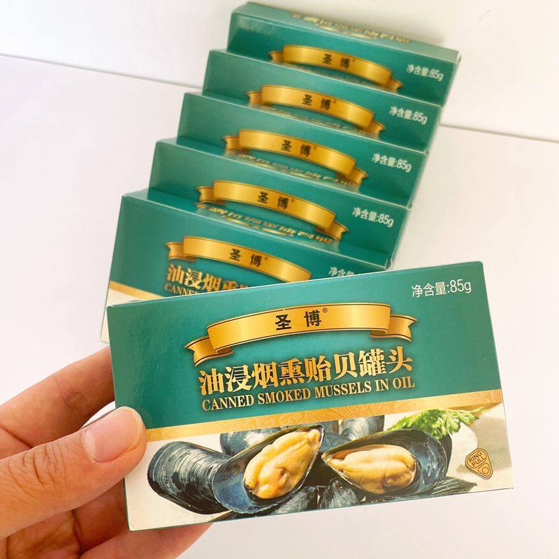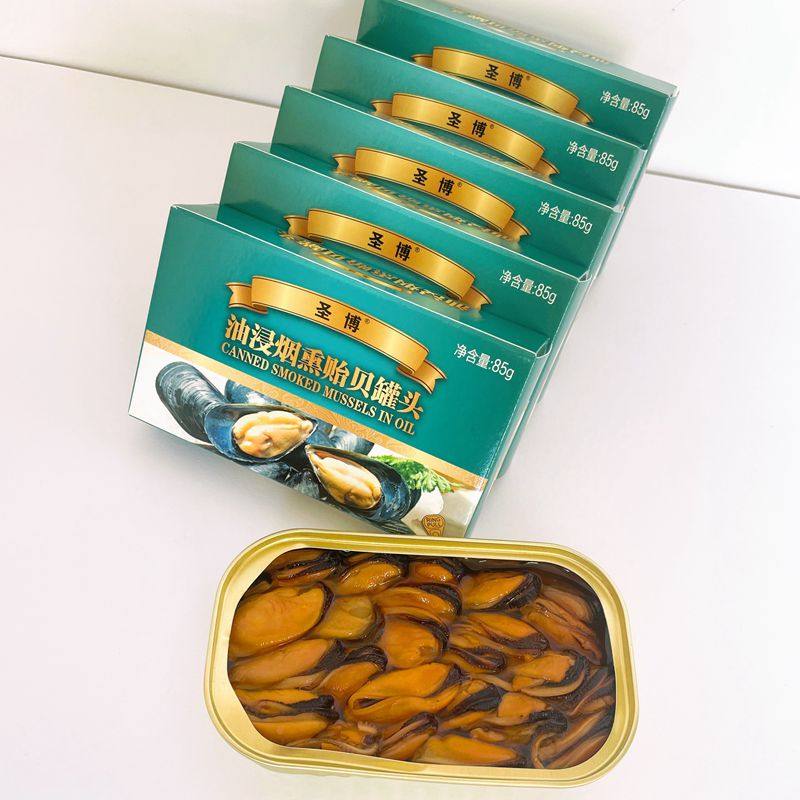5盒85g烟熏贻贝海虹罐头即食出口